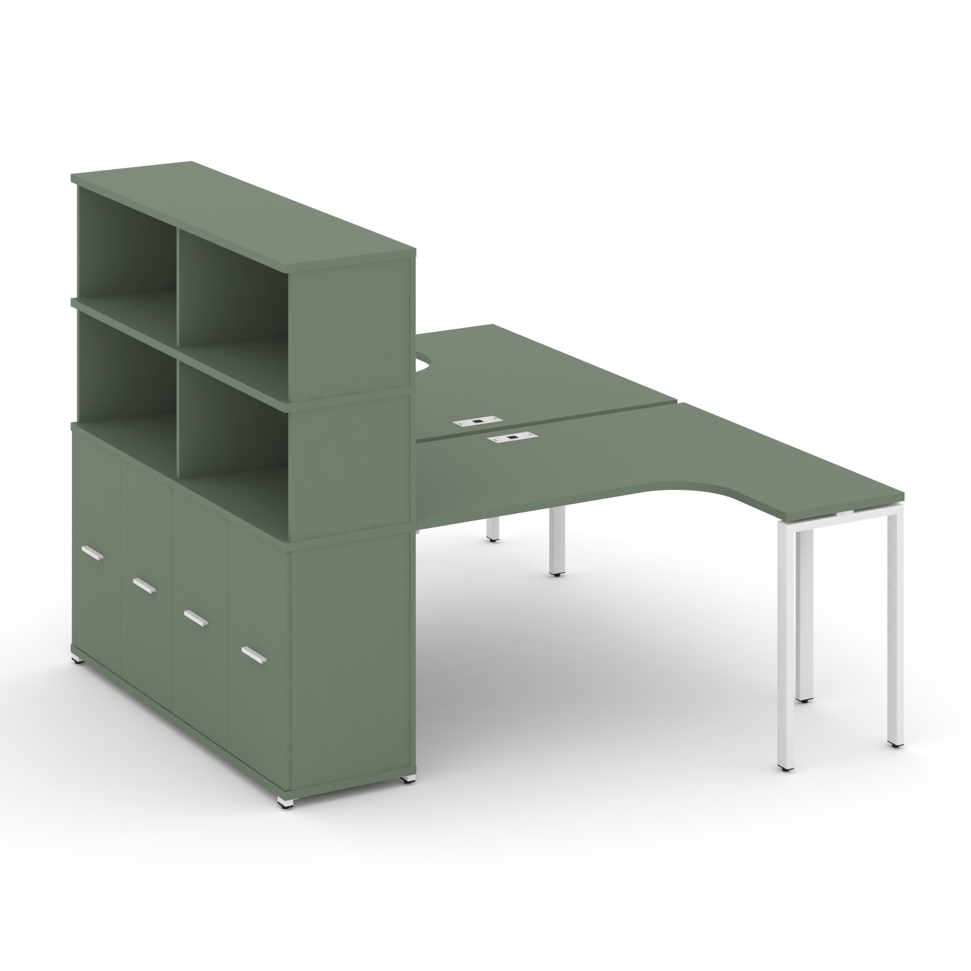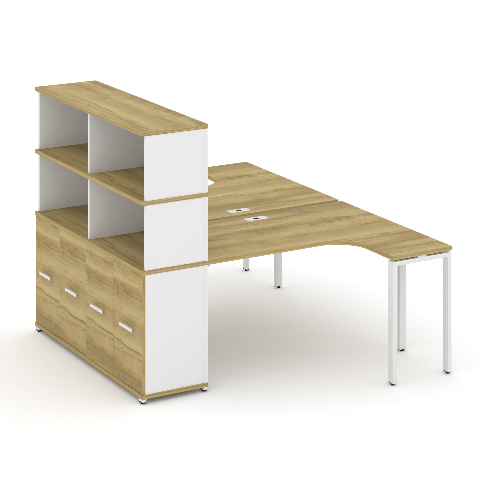 Concept Рабочая станция с опорным распаш. шкафом с надставкой выс. CN.DSA-216 W Кобо/Металл Белый 20