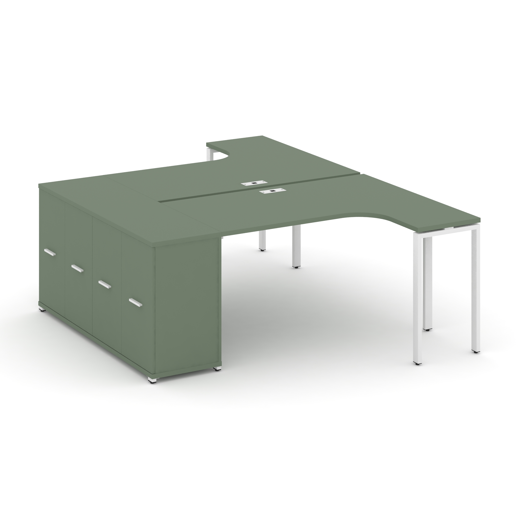 Concept Рабочая станция с двойной опорной тумбой CN.DSA-301 W Кобо/Металл Белый 1380/1746*2400*750