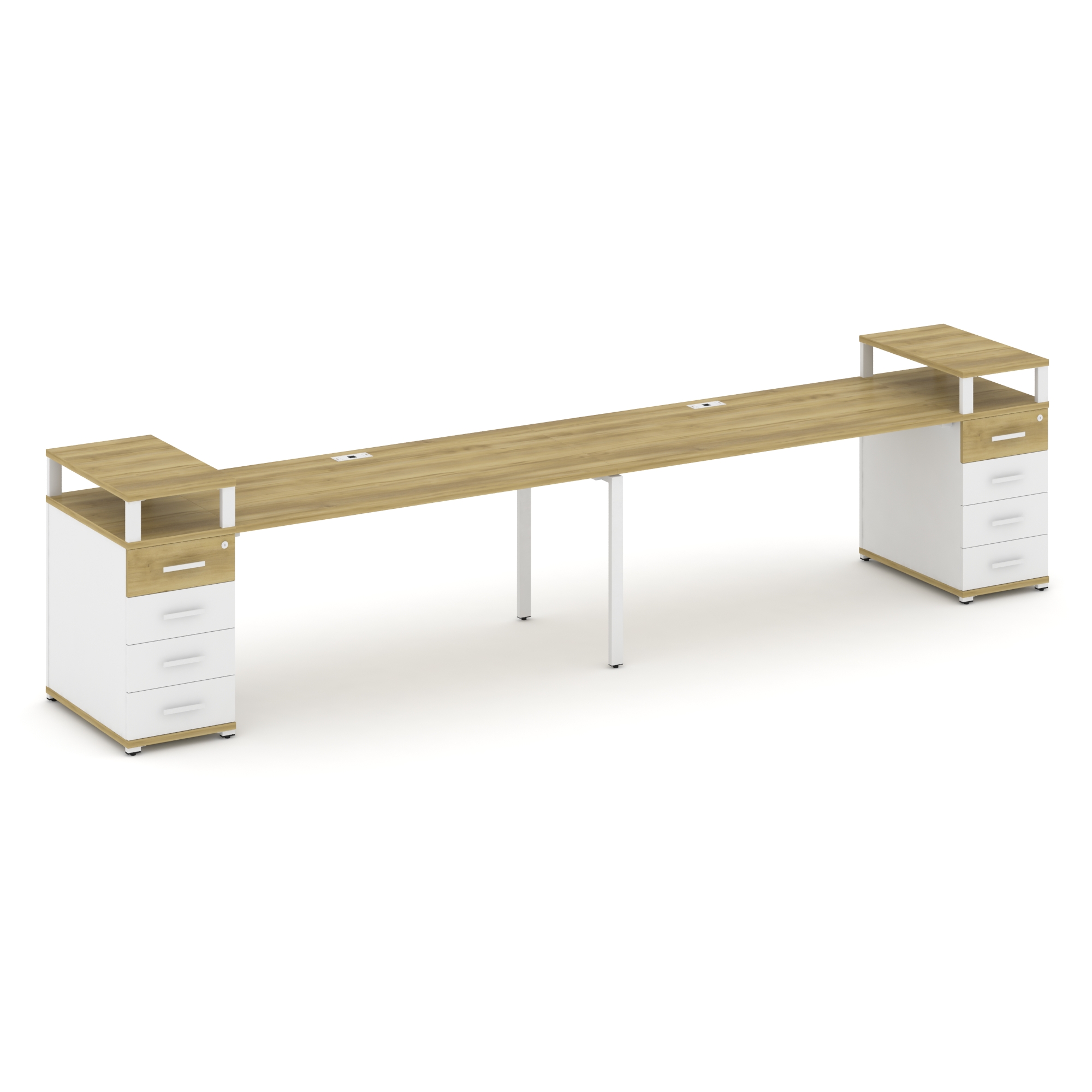 Concept Рабочая станция 2 места с 2 опорными тумбами CN.ORS-428 W Дуб Винченцо/Белый Бриллиант/Метал