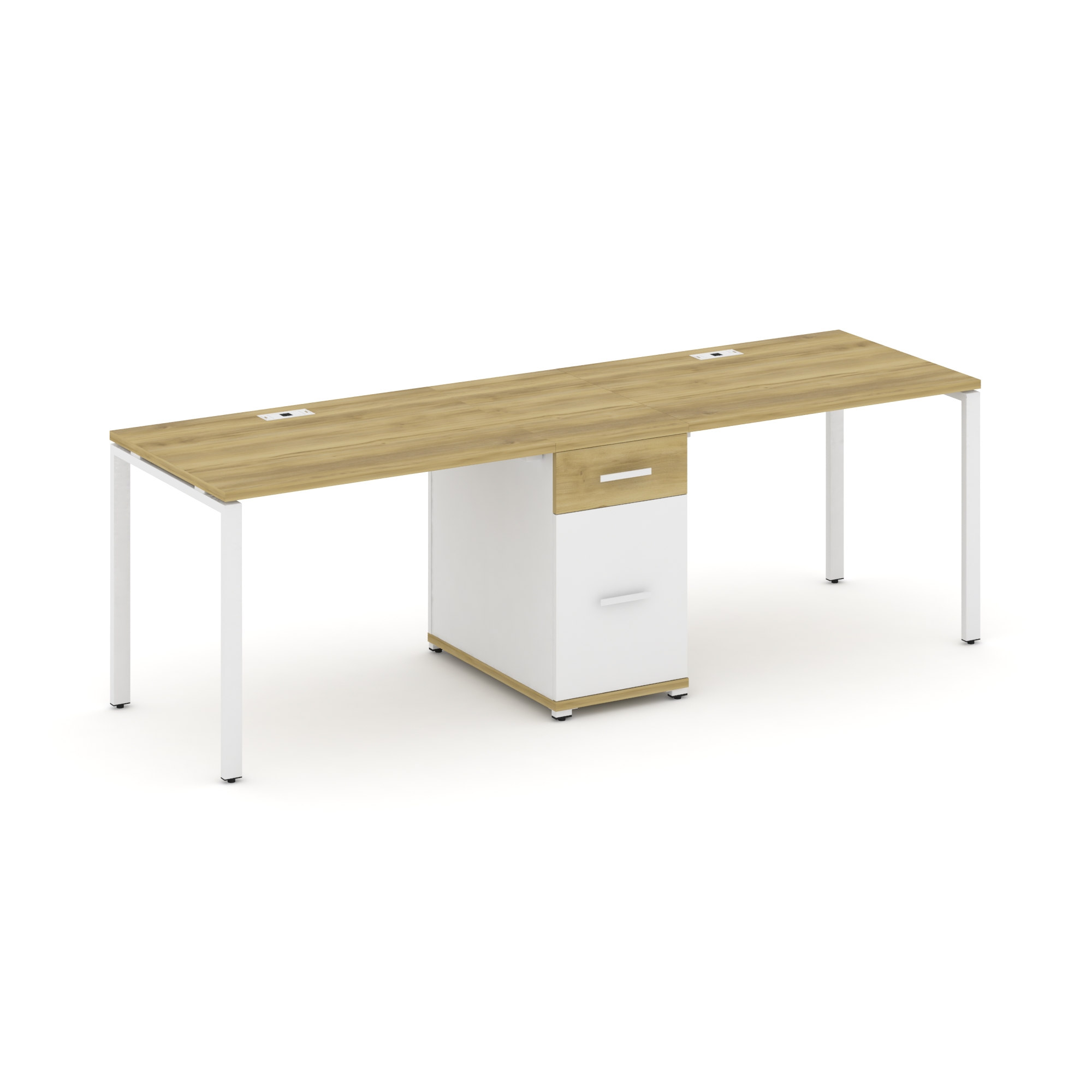 Concept Рабочая станция 2 места с 1 опорной тумбой CN.ORS-406 W Дуб Винченцо/Белый Бриллиант/Металл