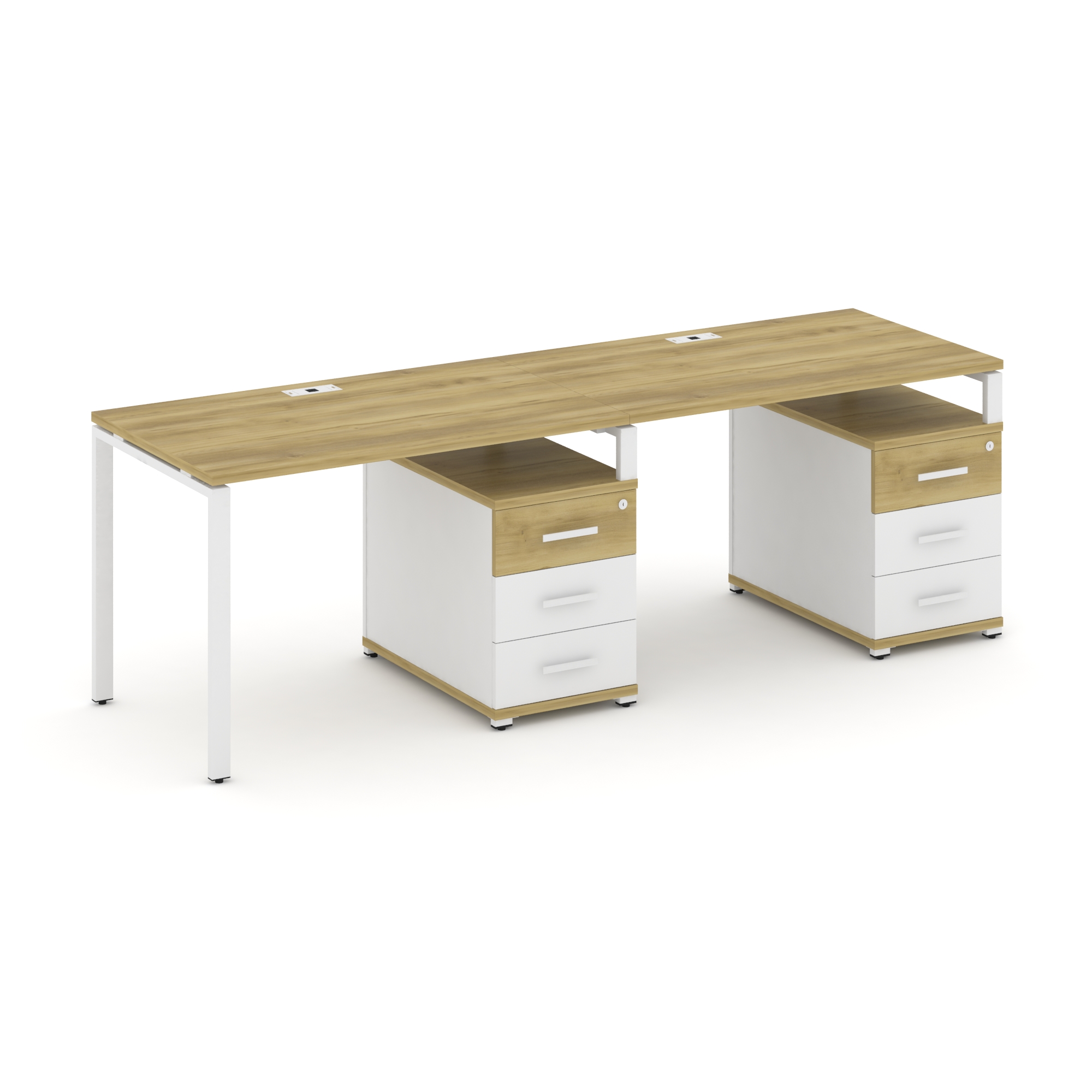 Concept Рабочая станция 2 места с 2 опорными тумбами CN.ORS-309 W Дуб Винченцо/Белый Бриллиант/Метал