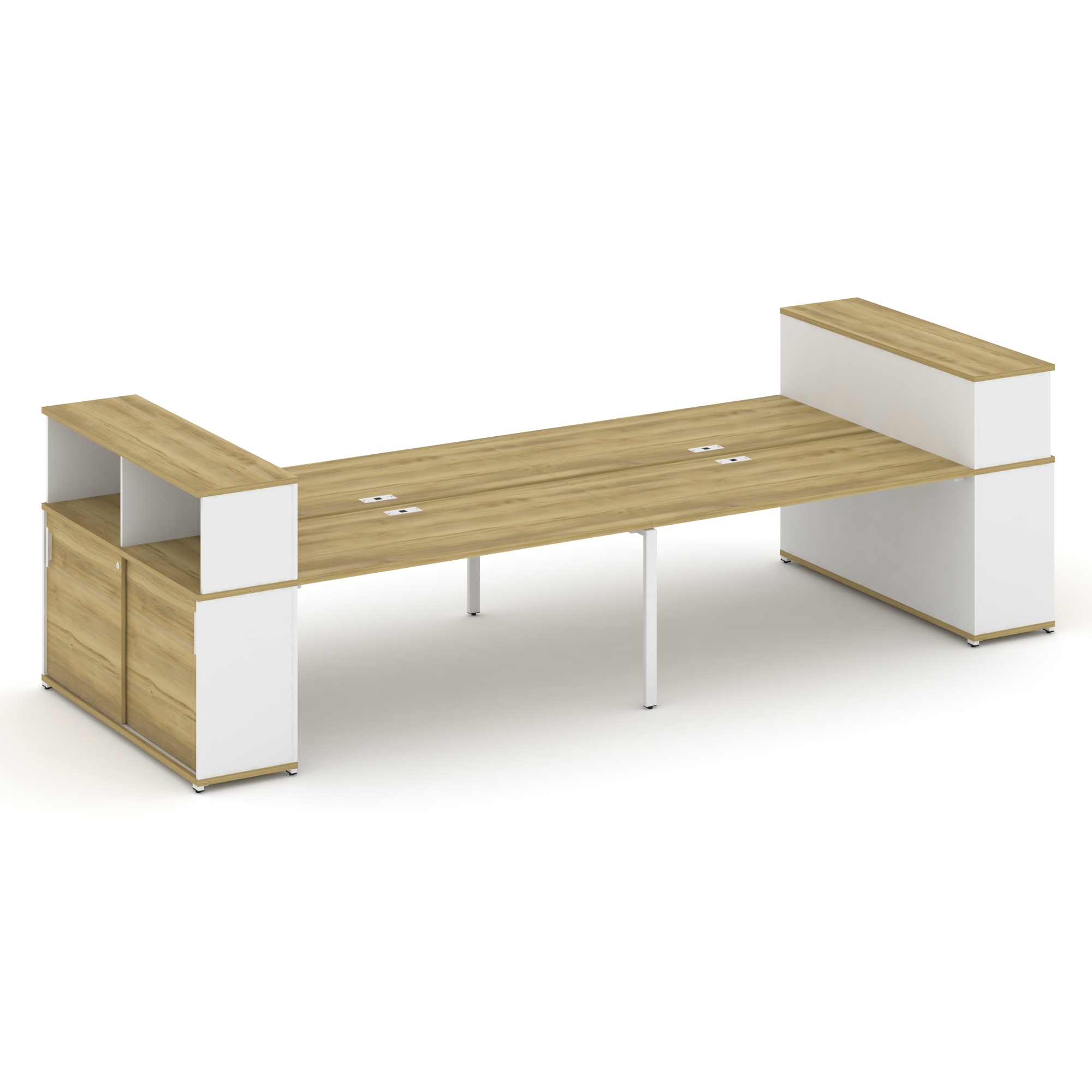 Concept Рабочая станция 4 места с 2 опорными тумбами CN.DRS-425 W Дуб Винченцо/Белый Бриллиант/Метал