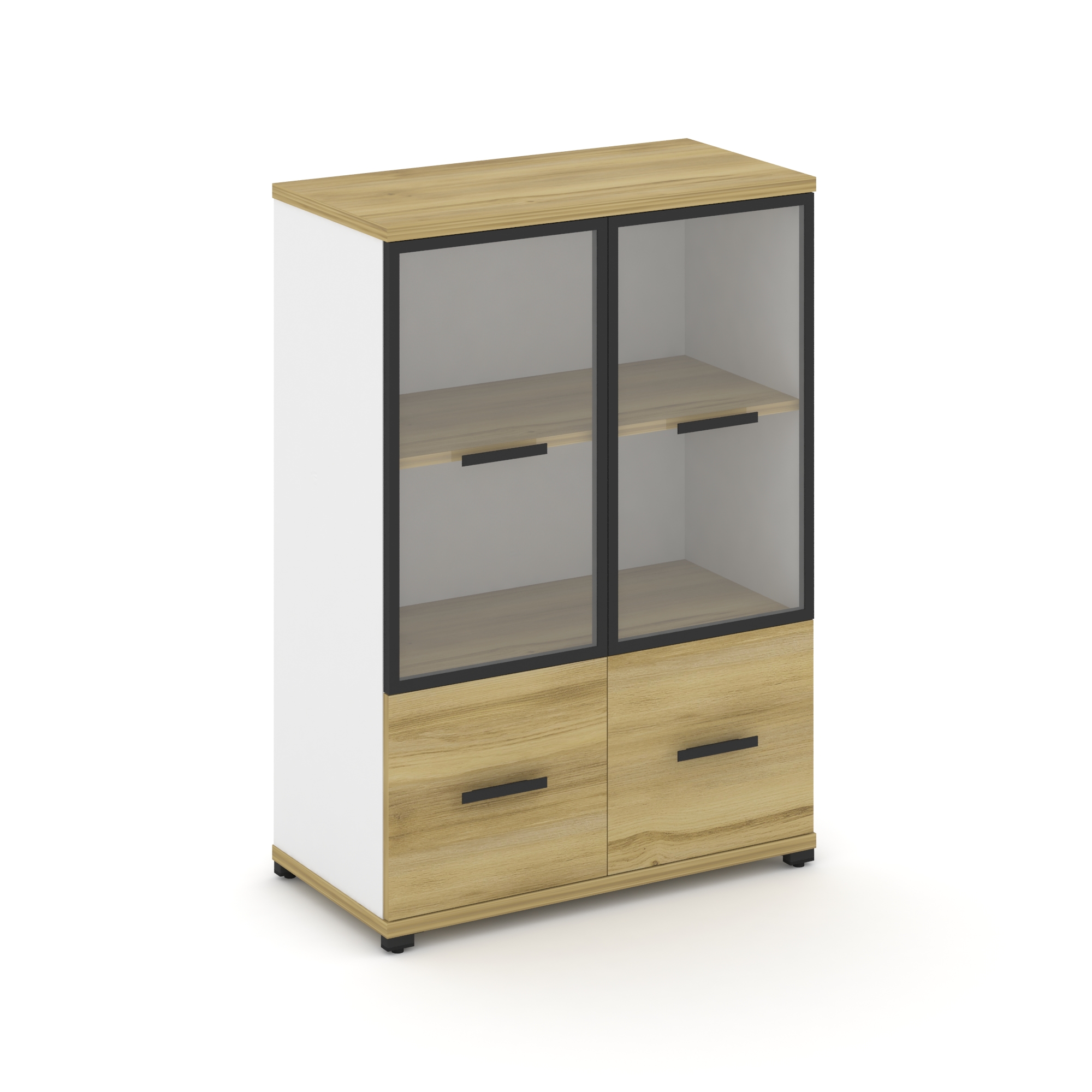 Concept Шкаф 1 широкая секция, 3 ниши CN.STS-312 RPB B Дуб Мали/Белый Бриллиант/Металл Черный/Прозра