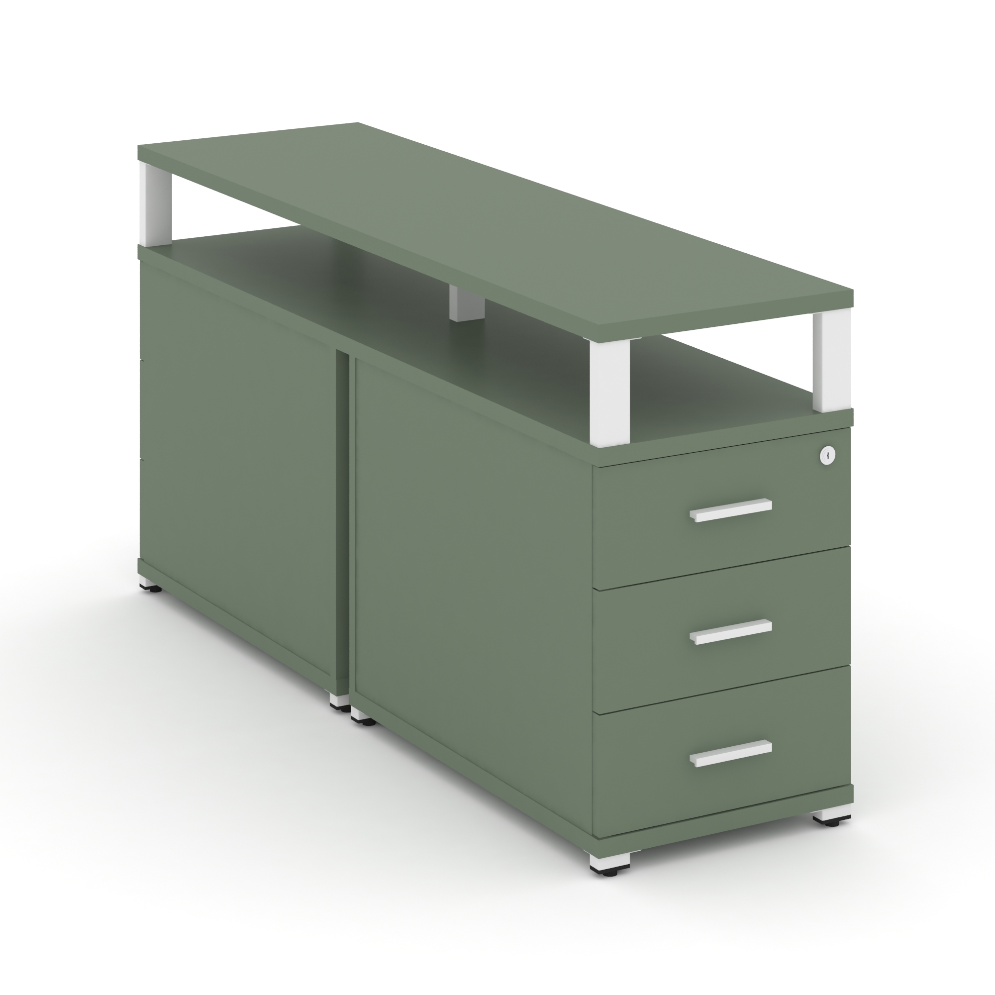 Concept Тумба двухсторонняя приставная 3 ящ. с надставкой. CN.DTGP-001 W Кобо/Металл Белый 420*1480*