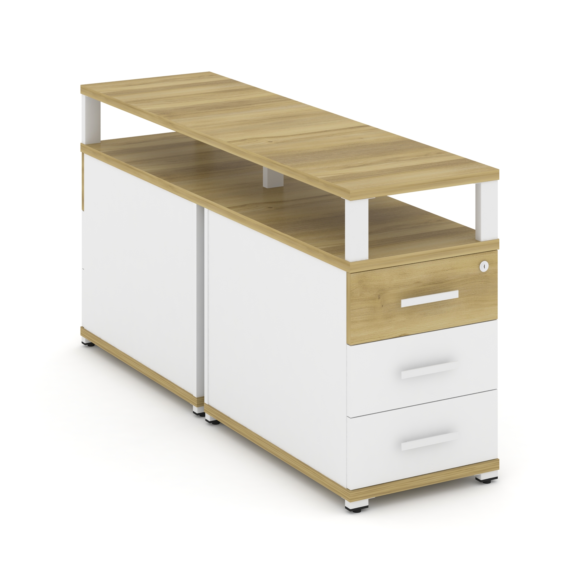 Concept Тумба двухсторонняя приставная 3 ящ. с надставкой. CN.DTGP-001 W Дуб Винченцо/Белый Бриллиан