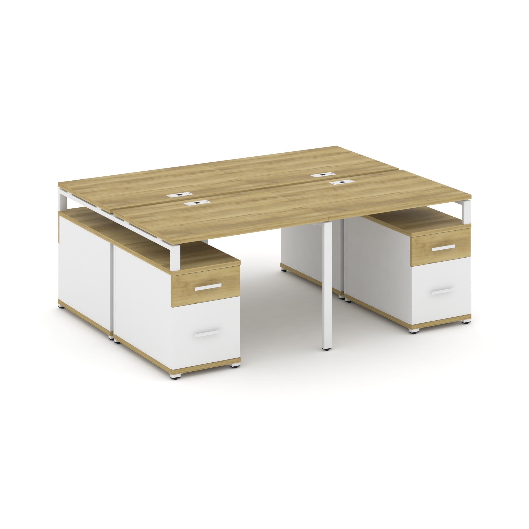 Concept Рабочая станция 4 места с 2 двухсторонними опорными тумбами CN.DRS-329 W Дуб Винченцо/Белый