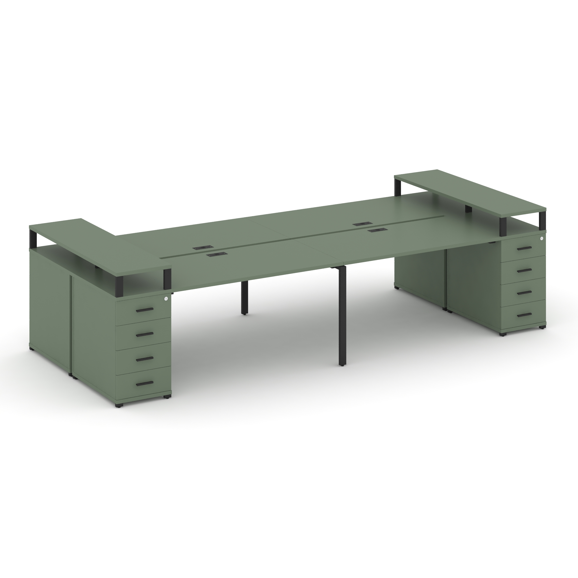 Concept Рабочая станция 4 места с 2 опорными тумбами CN.DRS-444 B Кобо/Металл Черный 4000*1480*917