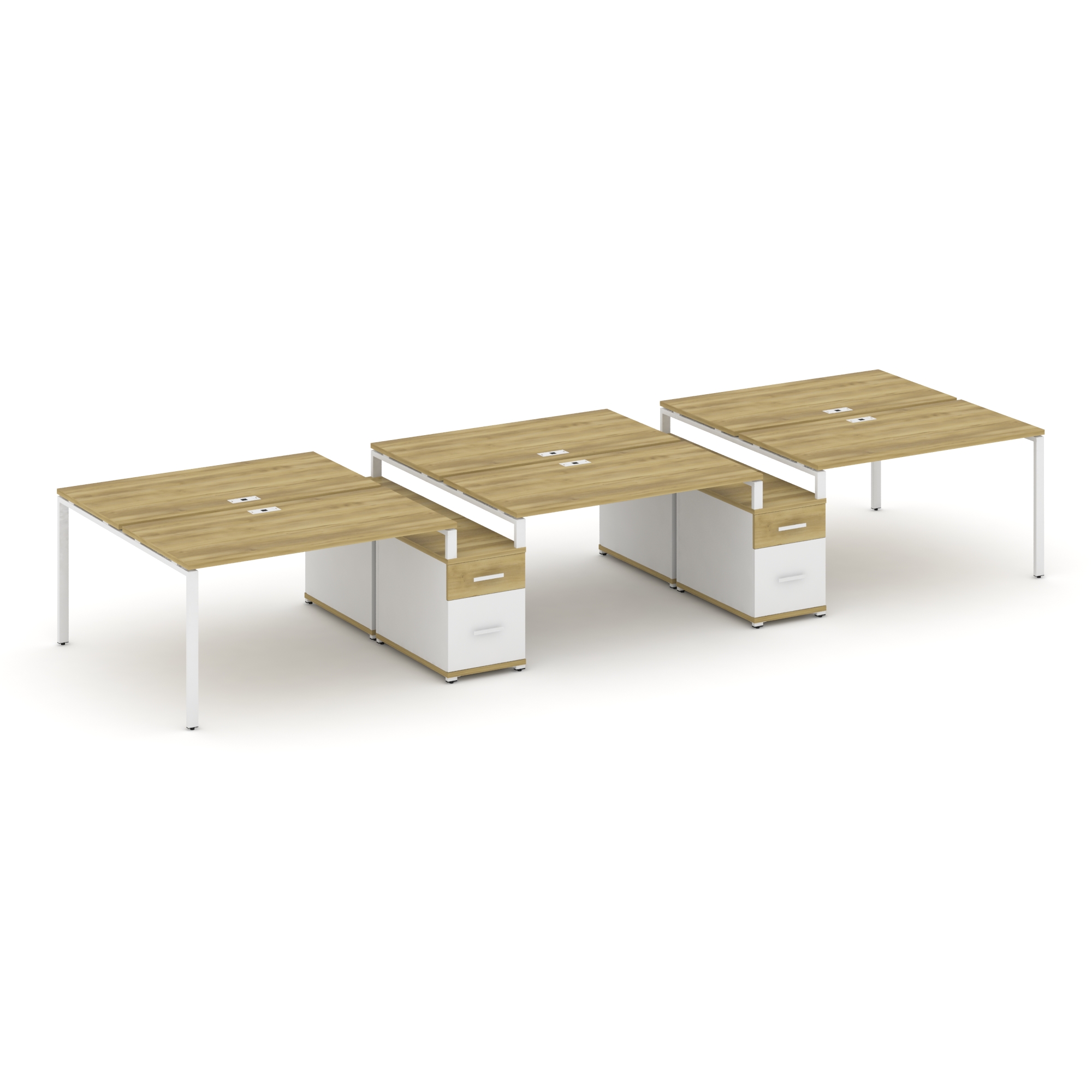 Concept Рабочая станция 6 мест с 2 двухсторонними опорными тумбами CN.DRS-337 W Дуб Винченцо/Белый Б
