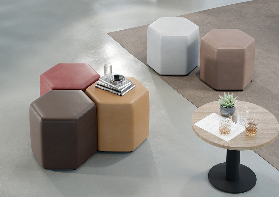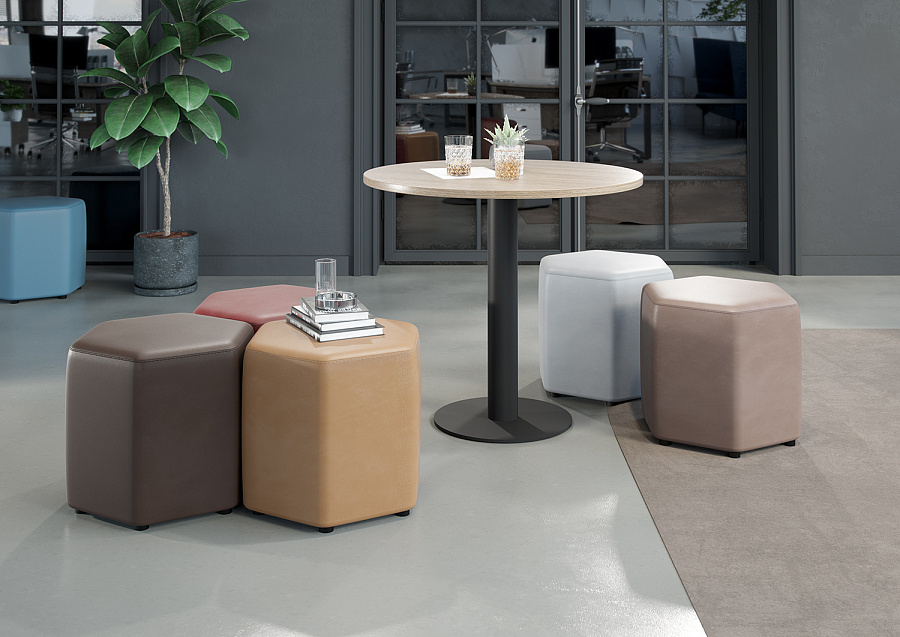 Преобразите ваше пространство с яркими и стильными пуфами Vermont! Они помогут вам быстро адаптировать обстановку под ваши нужды и создать свою неповторимую атмосферу. Количество возможных вариантов расстановки ограничивается только вашей фантазией. Вы сможете легко создать подходящую комбинацию для переговоров, летучек или зоны отдыха.