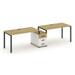 Concept Рабочая станция 2 места с 1 опорной тумбой CN.ORS-303 W Дуб Винченцо/Белый Бриллиант/Металл
