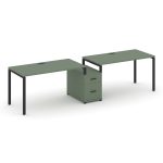 Concept Рабочая станция 2 места с 2 опорными тумбами CN.ORS-323 B Кобо/Металл Черный 2760/3426*720*7