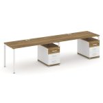 Concept Рабочая станция 2 места с 2 опорными тумбами CN.ORS-312 W Дуб Винченцо/Белый Бриллиант/Метал