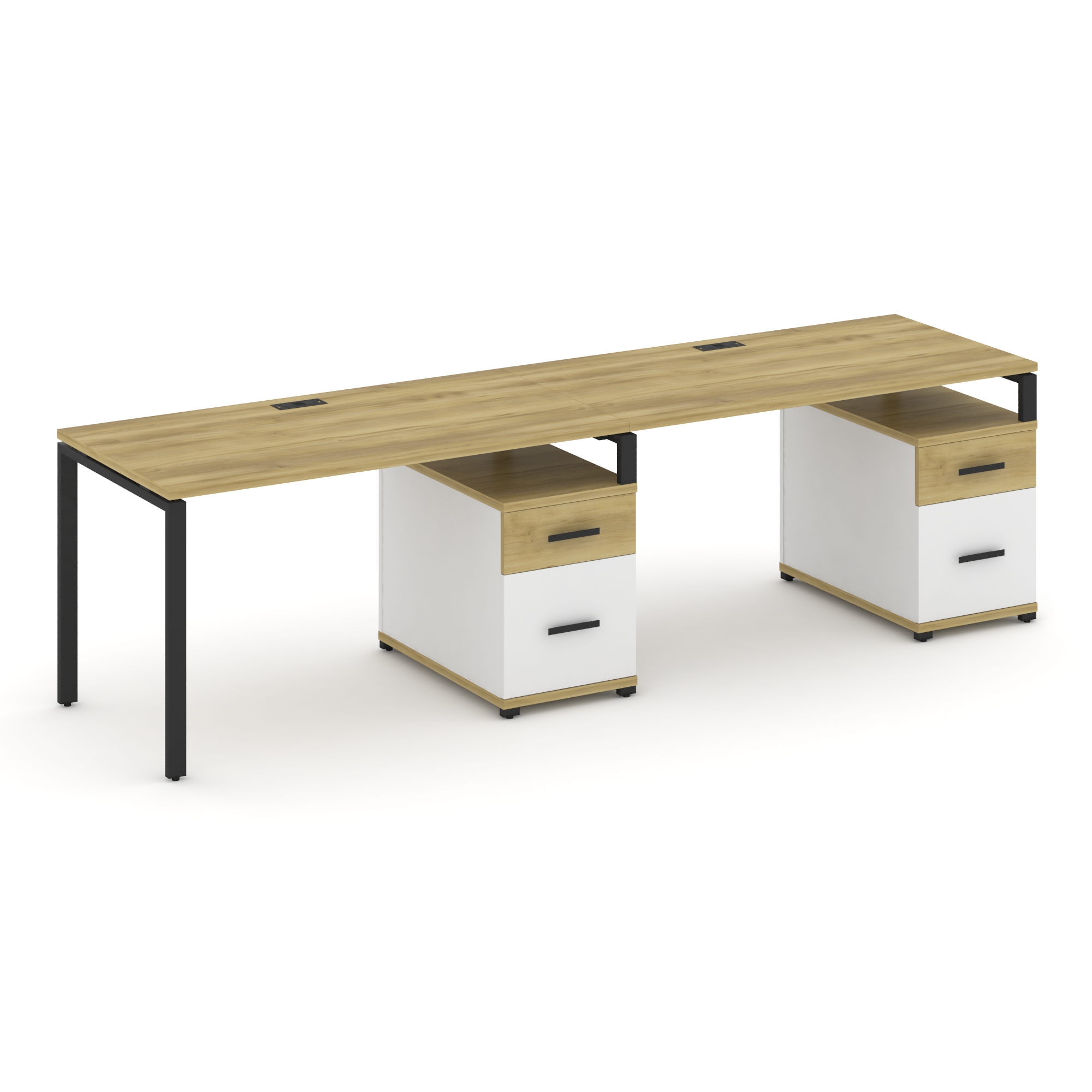 Concept Рабочая станция 2 места с 2 опорными тумбами CN.ORS-315 W Дуб Винченцо/Белый Бриллиант/Метал