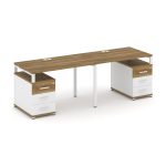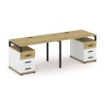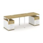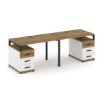 Concept Рабочая станция 2 места с 2 опорными тумбами CN.ORS-318 W Дуб Винченцо/Белый Бриллиант/Метал