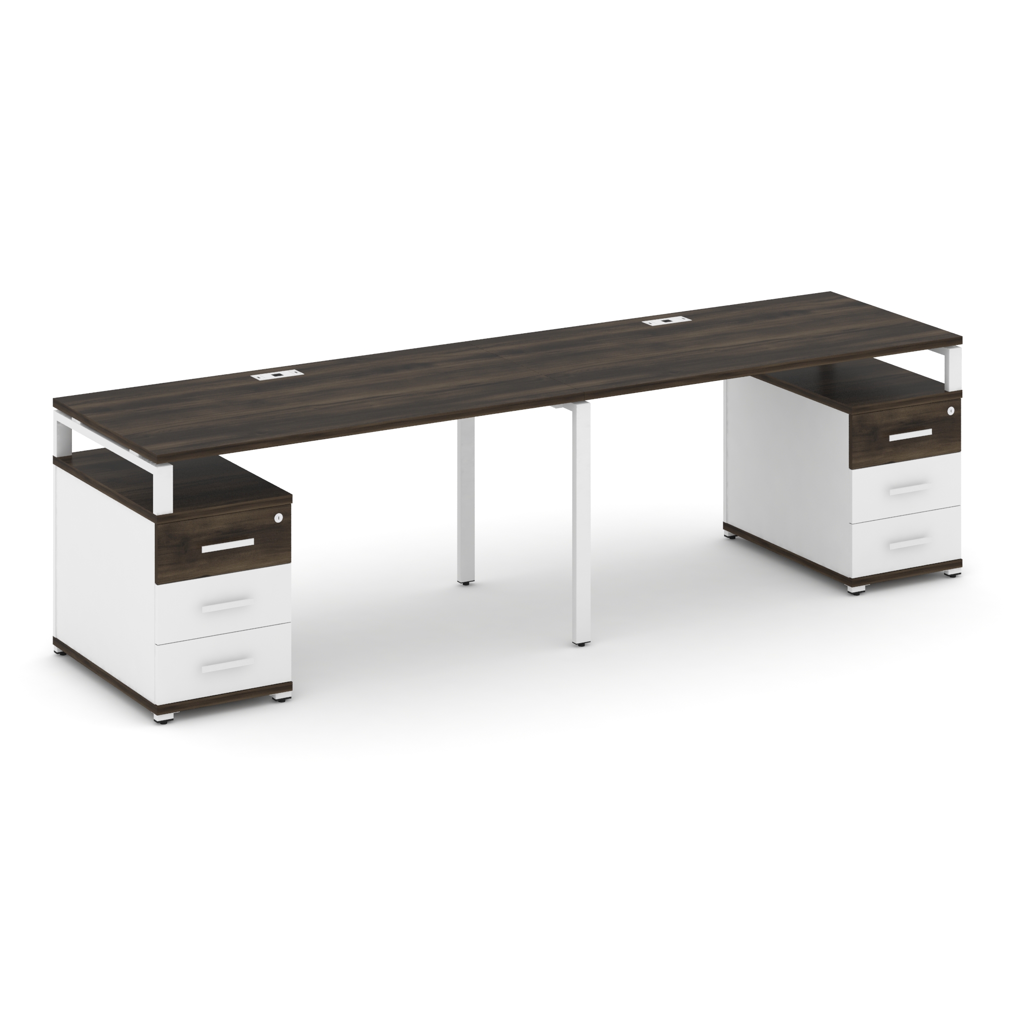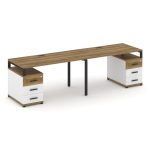 Concept Рабочая станция 2 места с 2 опорными тумбами CN.ORS-319 W Дуб Винченцо/Белый Бриллиант/Метал