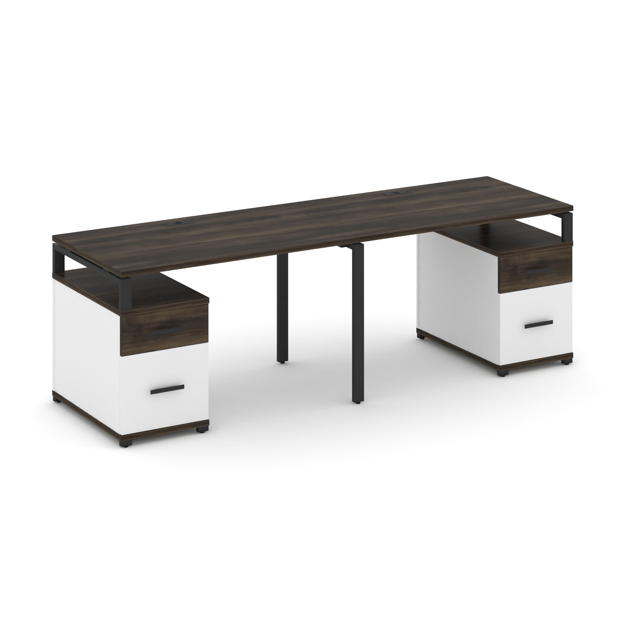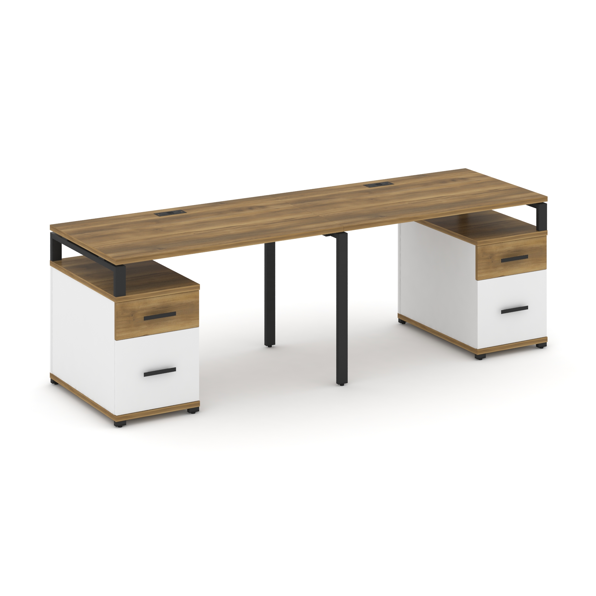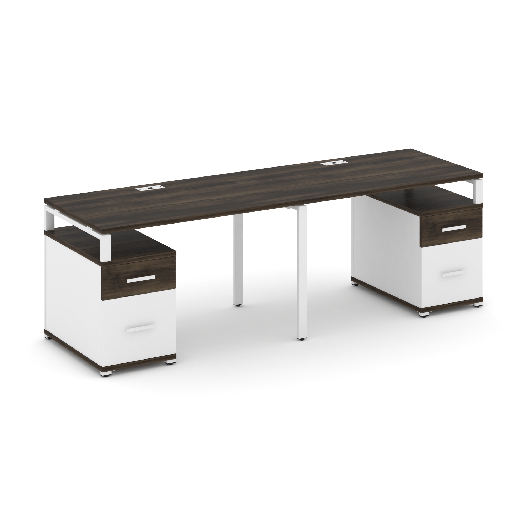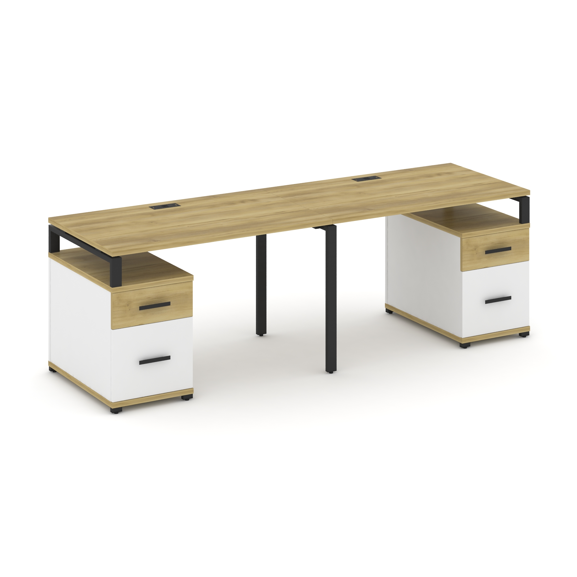 Concept Рабочая станция 2 места с 2 опорными тумбами CN.ORS-322 W Дуб Винченцо/Белый Бриллиант/Метал