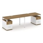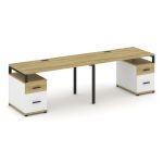 Concept Рабочая станция 2 места с 2 опорными тумбами CN.ORS-323 W Дуб Винченцо/Белый Бриллиант/Метал