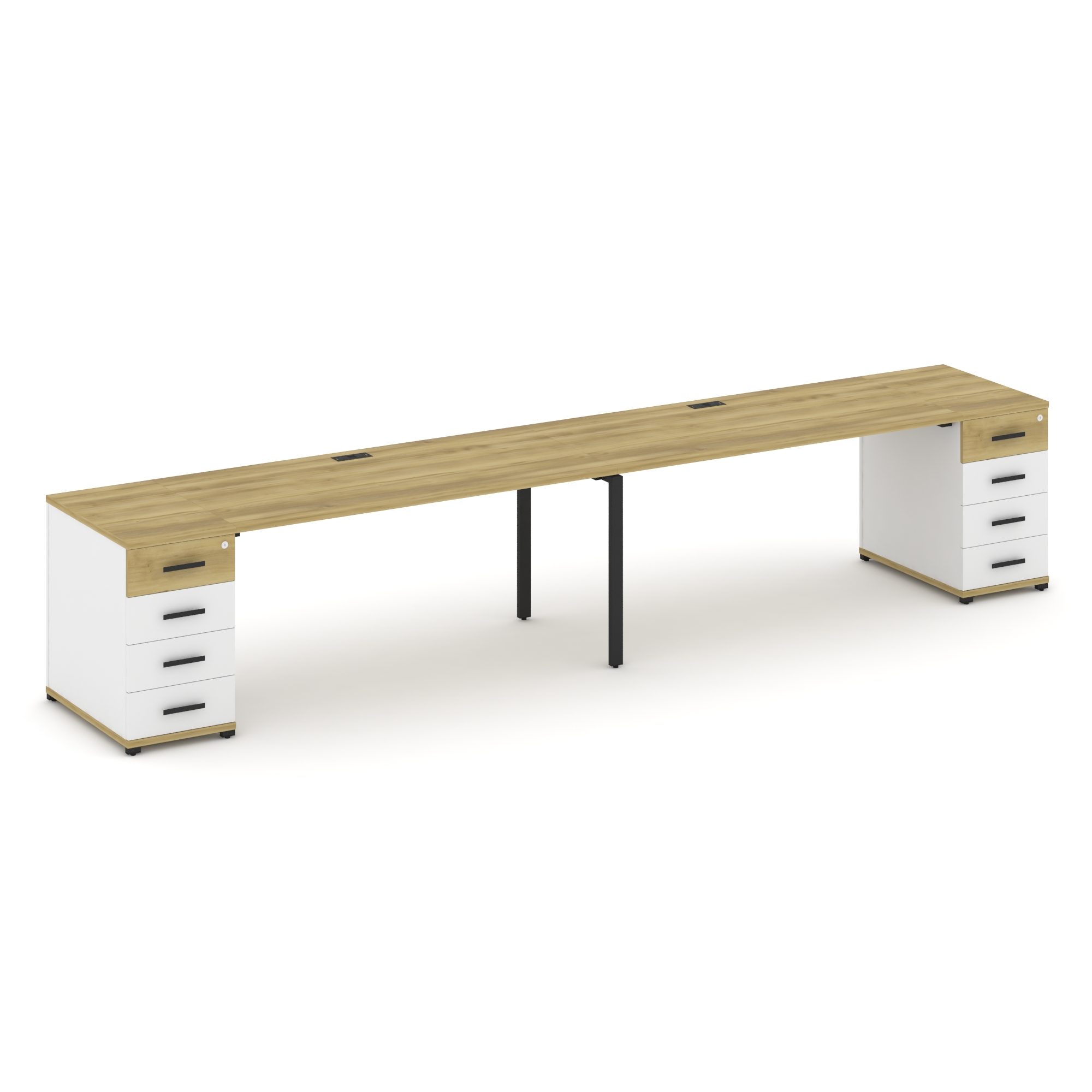 Concept Рабочая станция 2 места с 2 опорными тумбами CN.ORS-412 W Дуб Винченцо/Белый Бриллиант/Метал