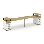Concept Рабочая станция 2 места с 2 опорными тумбами CN.ORS-316 W Дуб Винченцо/Белый Бриллиант/Метал