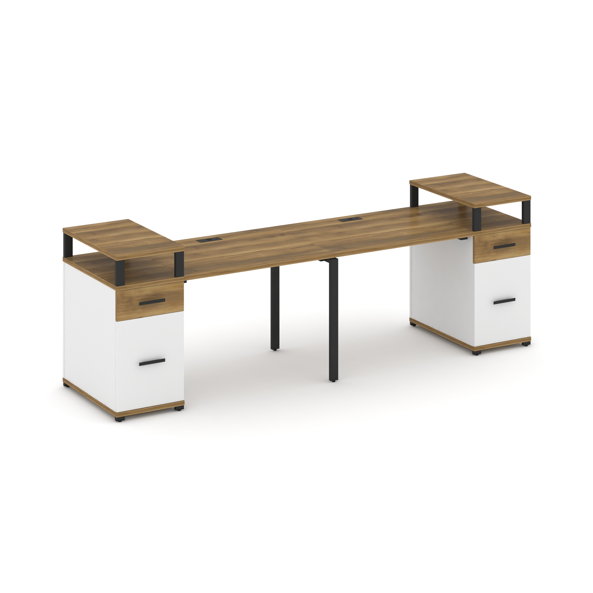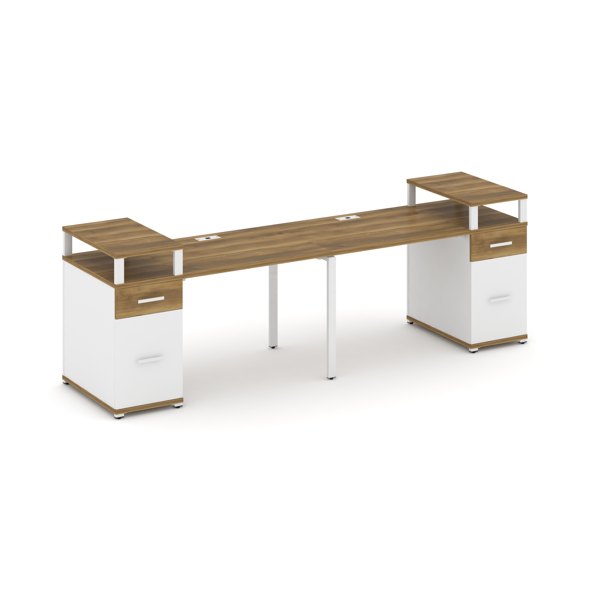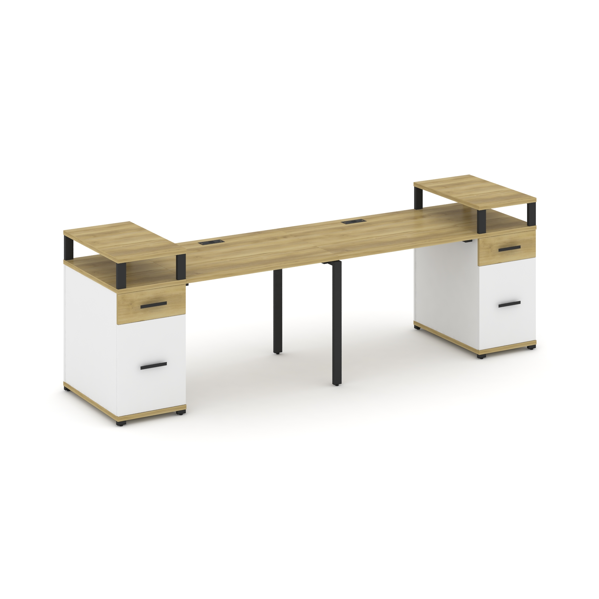 Concept Рабочая станция 2 места с 2 опорными тумбами CN.ORS-429 W Дуб Винченцо/Белый Бриллиант/Метал