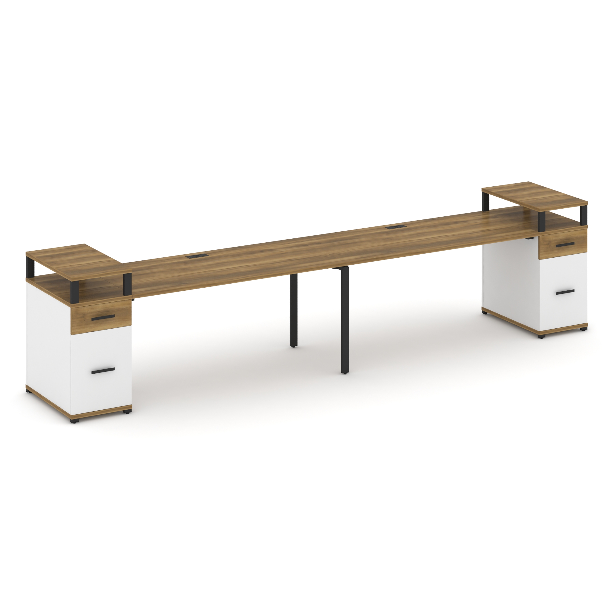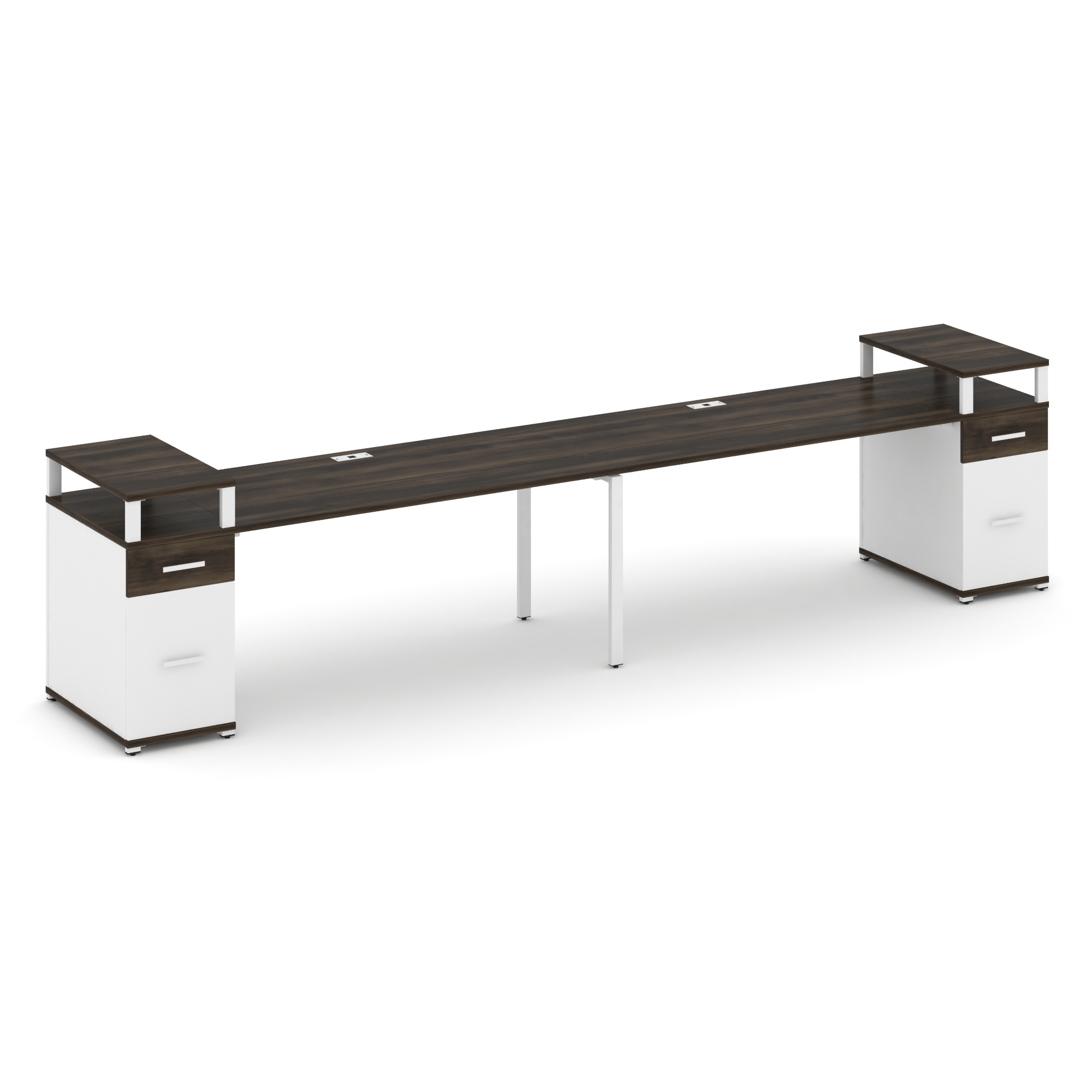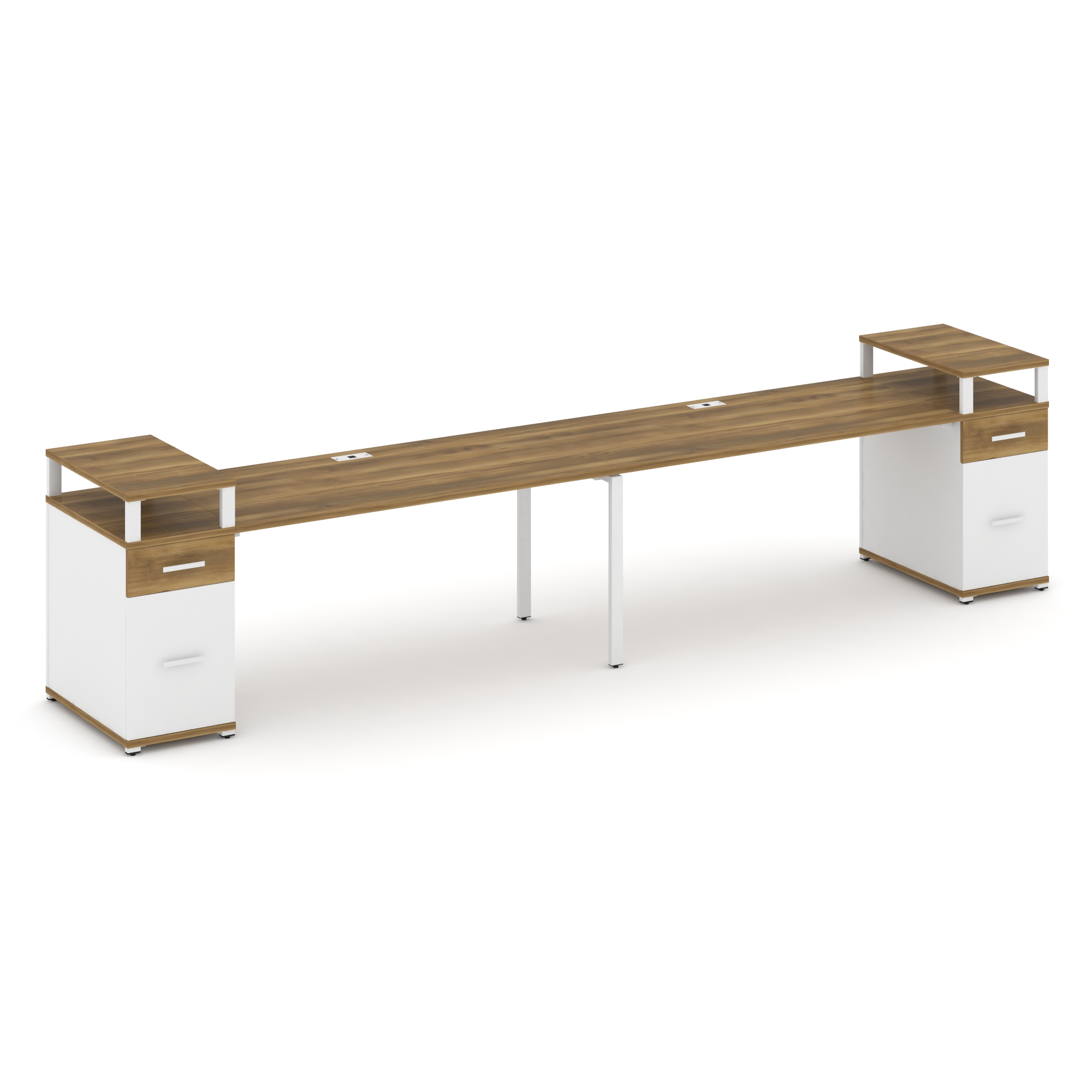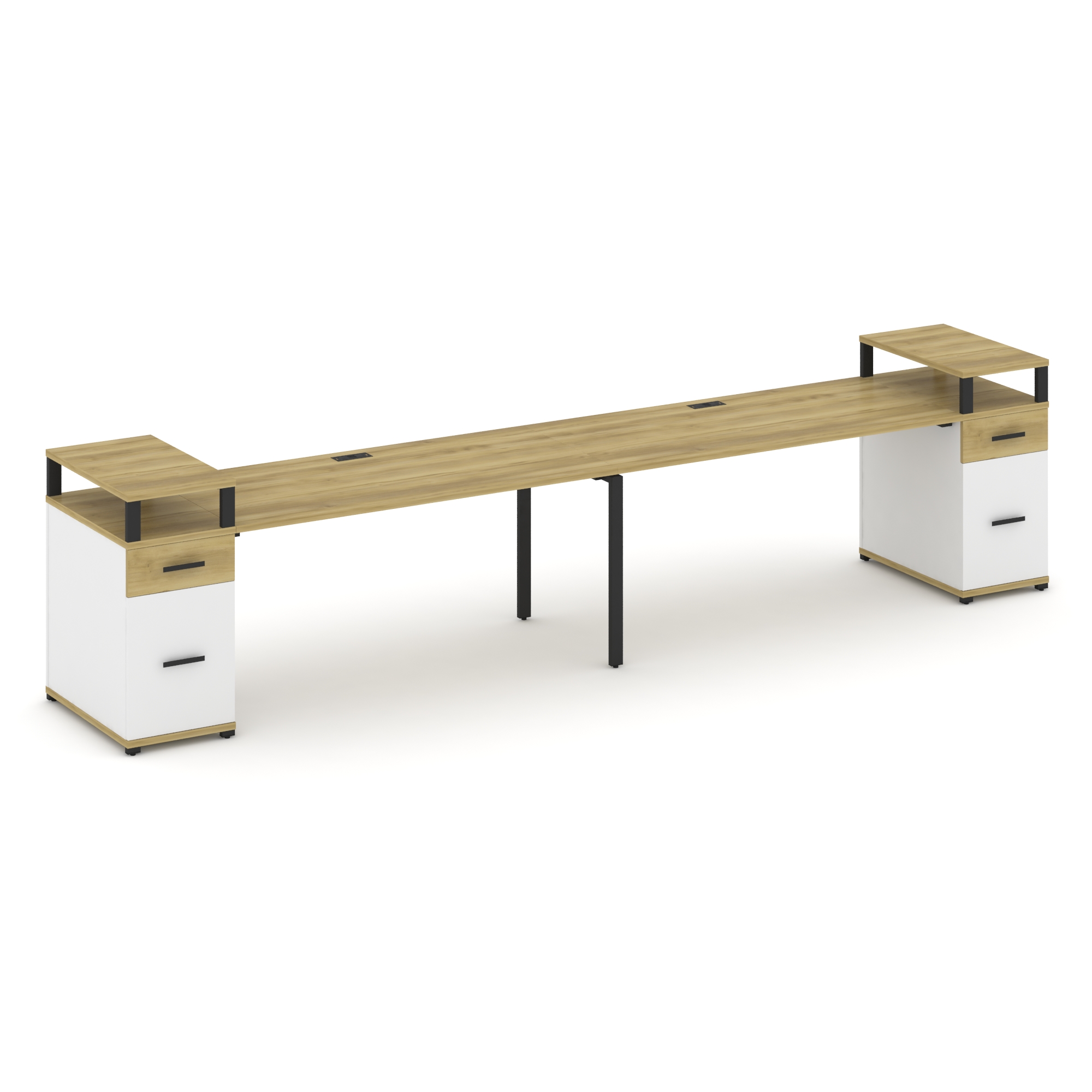 Concept Рабочая станция 2 места с 2 опорными тумбами CN.ORS-432 W Дуб Винченцо/Белый Бриллиант/Метал