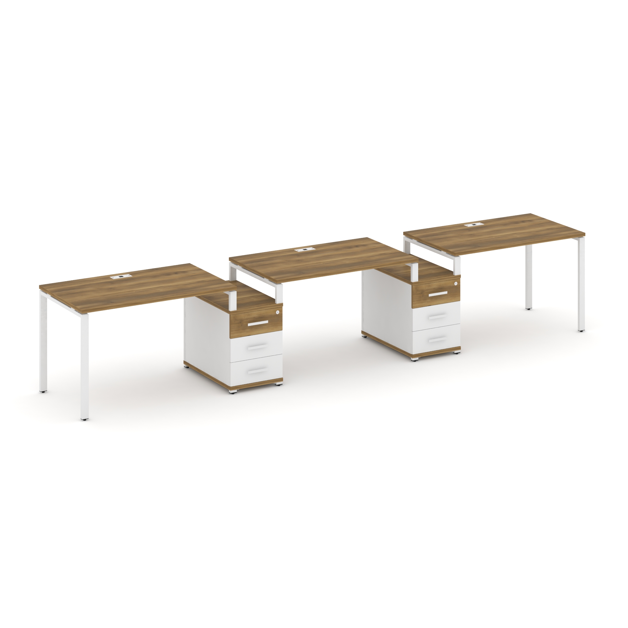 Concept Рабочая станция 3 места с 3 опорными тумбами CN.ORS-444 W Дуб Винченцо/Белый Бриллиант/Метал