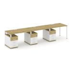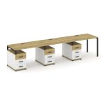Concept Рабочая станция 3 места с 3 опорными тумбами CN.ORS-342 W Дуб Винченцо/Белый Бриллиант/Метал