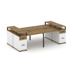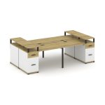 Concept Рабочая станция 4 места 2 опорными тумбами CN.DRS-445 W Дуб Винченцо/Белый Бриллиант/Металл