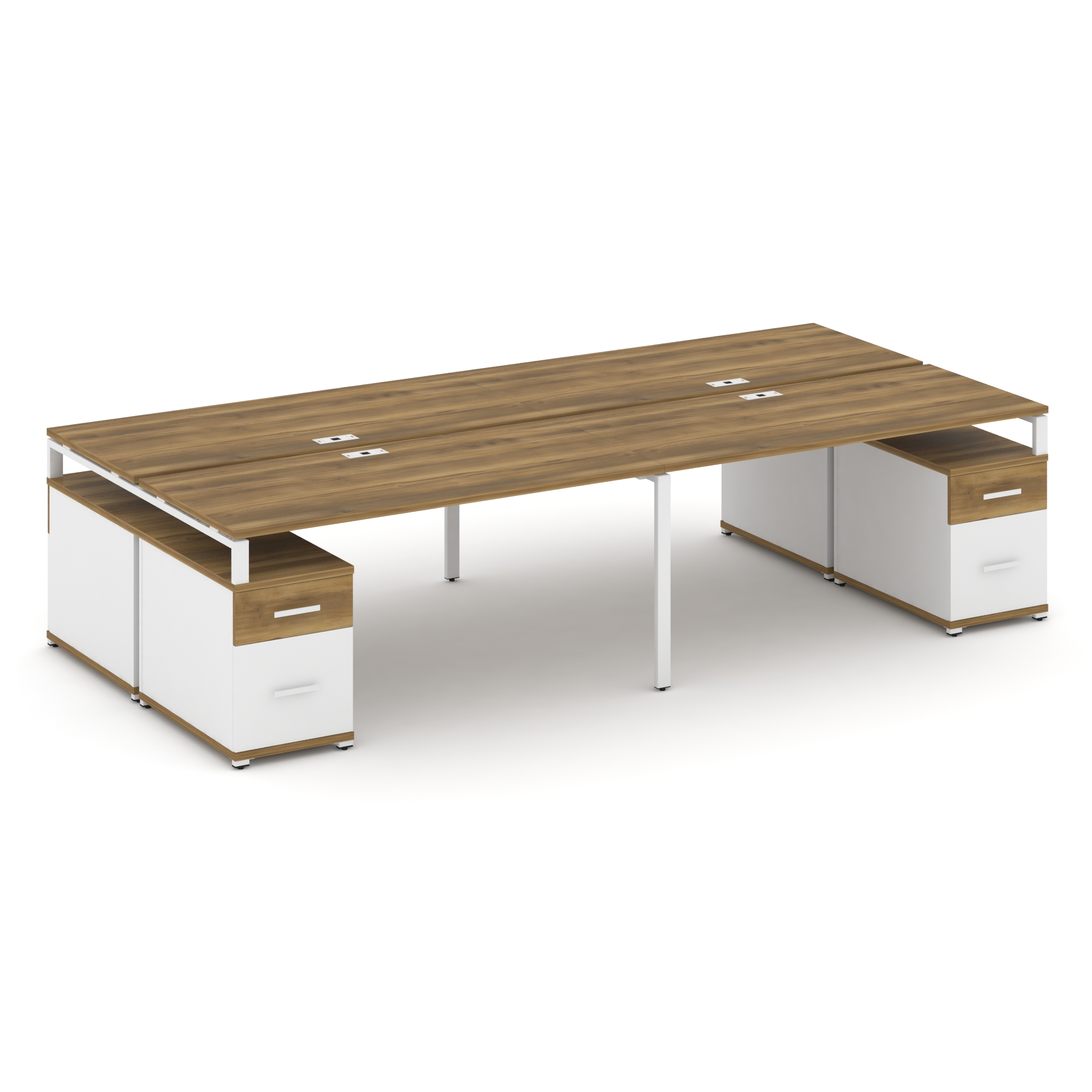 Concept Рабочая станция 4 места с 2 двухсторонними опорными тумбами CN.DRS-332 W Дуб Винченцо/Белый