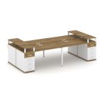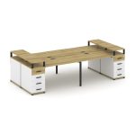 Concept Рабочая станция 4 места с 2 опорными тумбами CN.DRS-442 W Дуб Винченцо/Белый Бриллиант/Метал