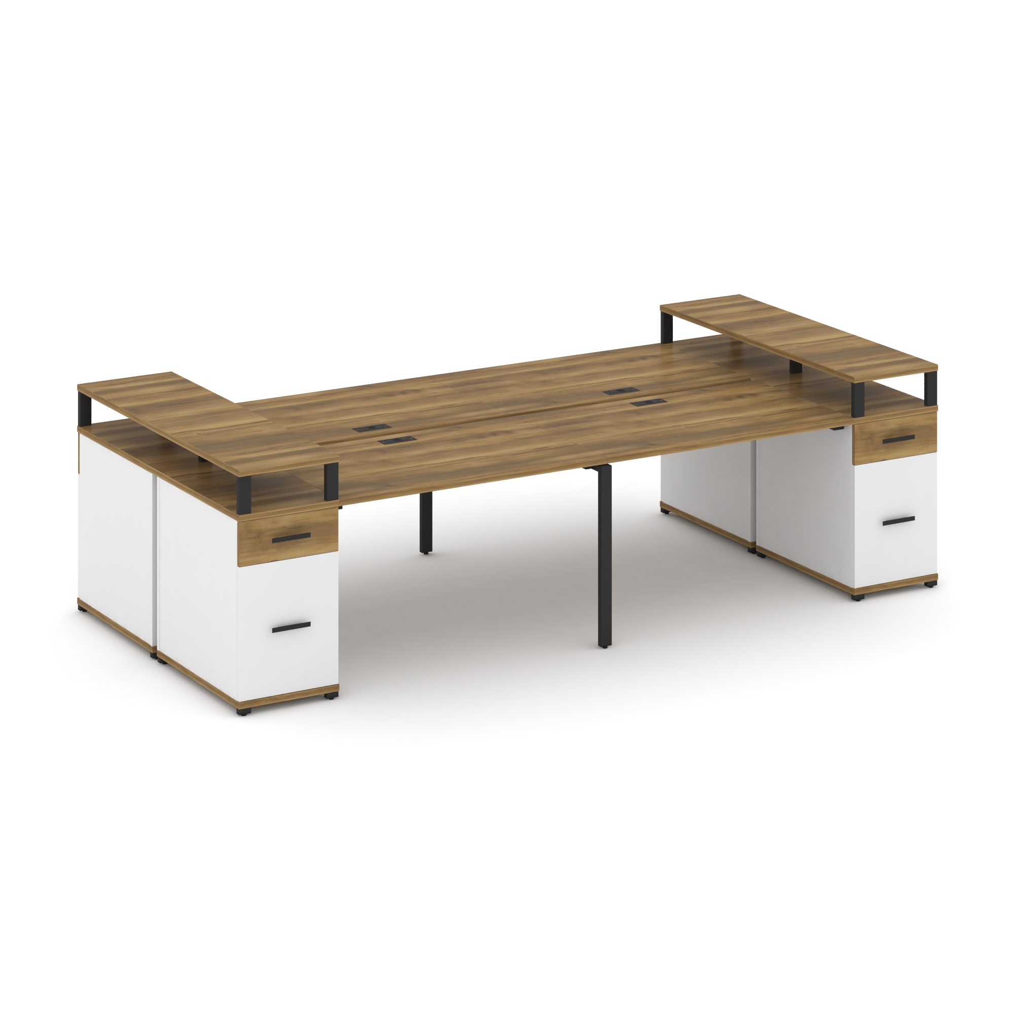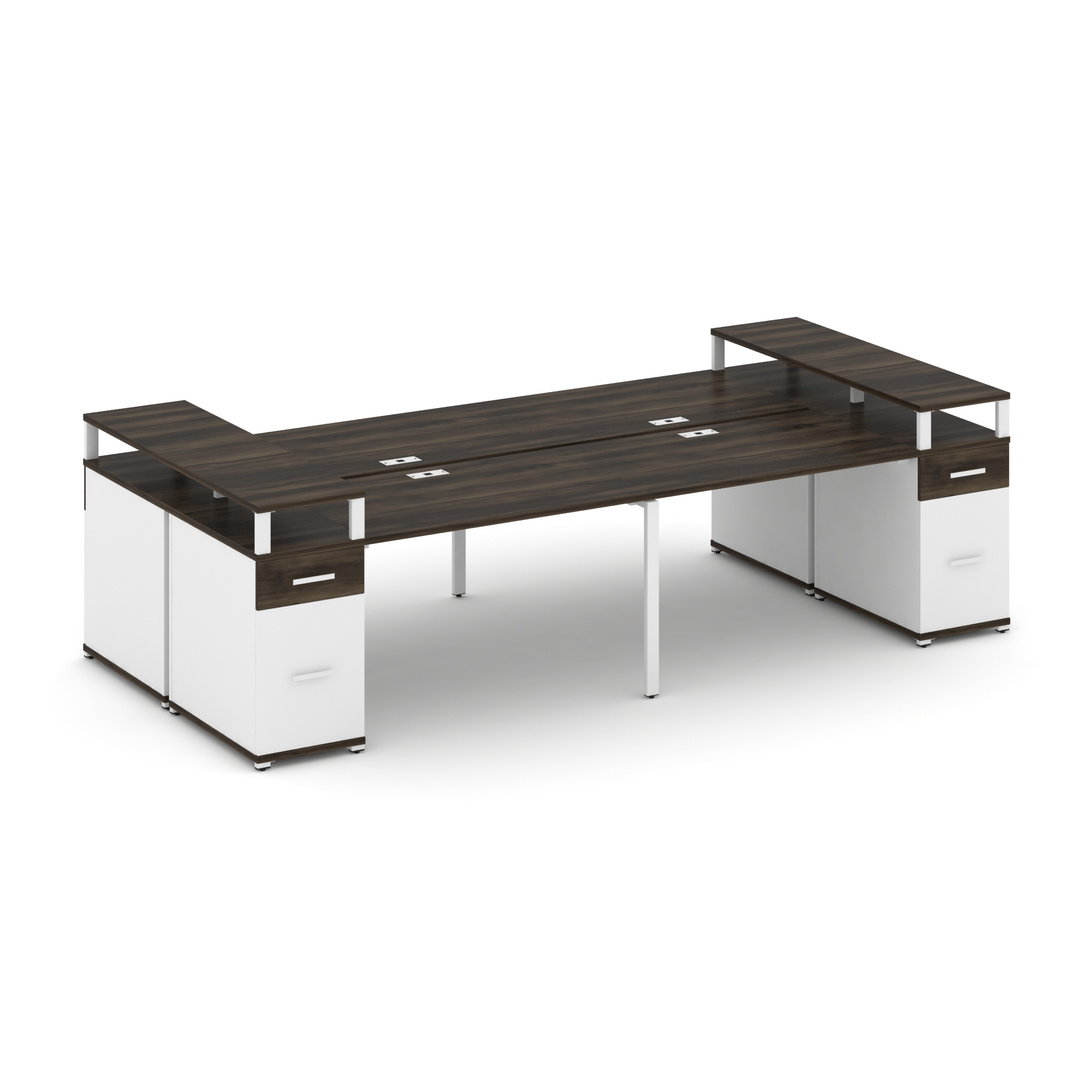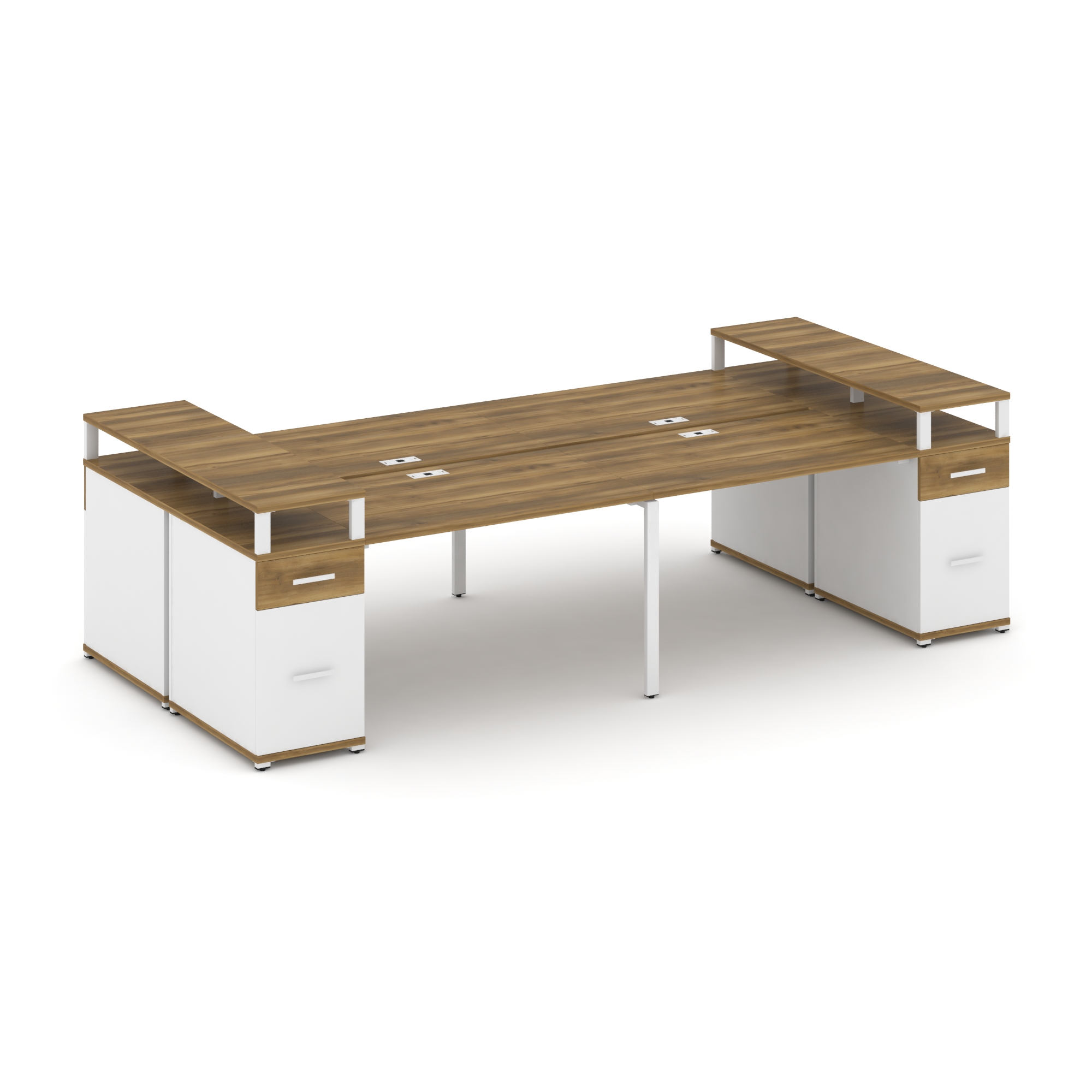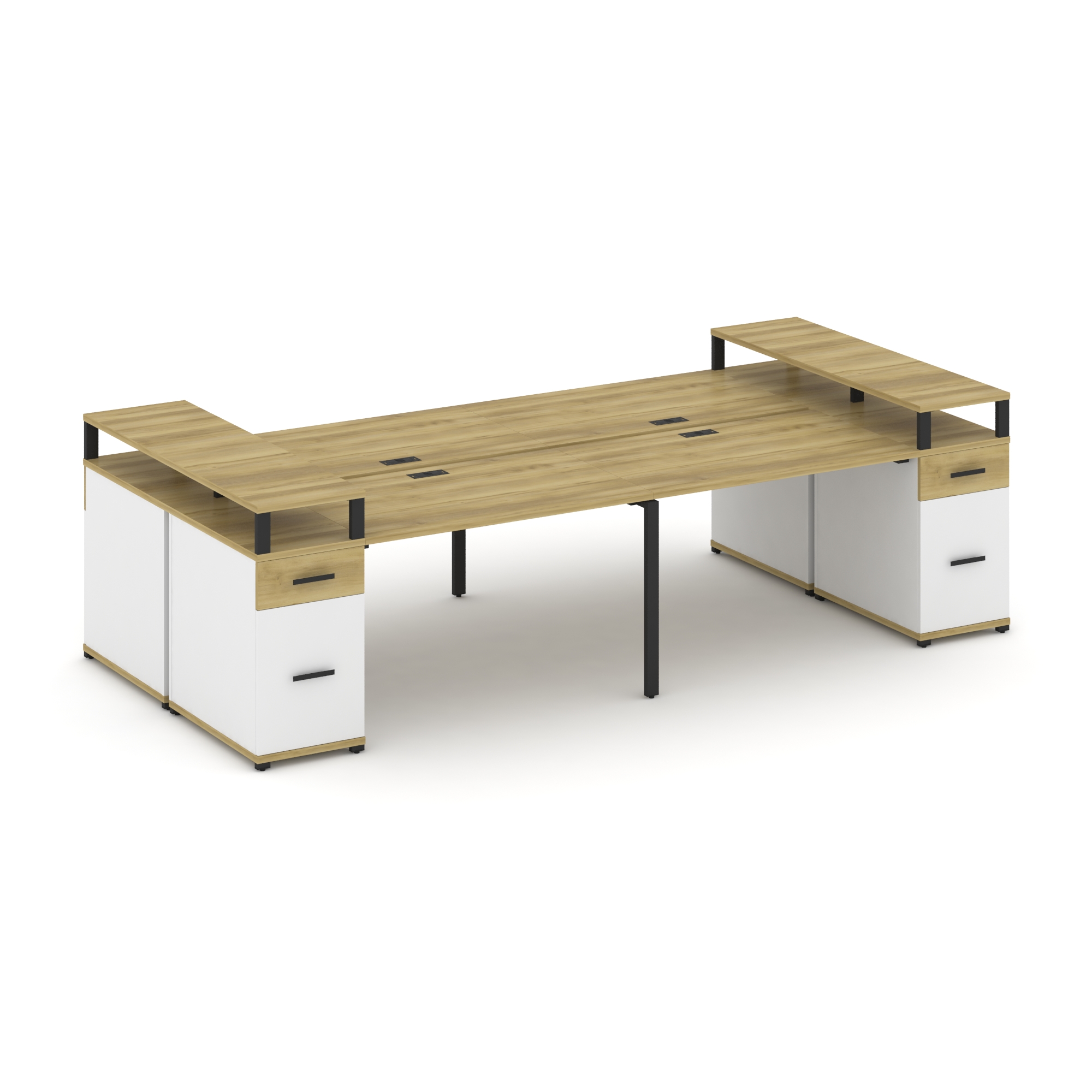 Concept Рабочая станция 4 места с 2 опорными тумбами CN.DRS-446 W Дуб Винченцо/Белый Бриллиант/Метал
