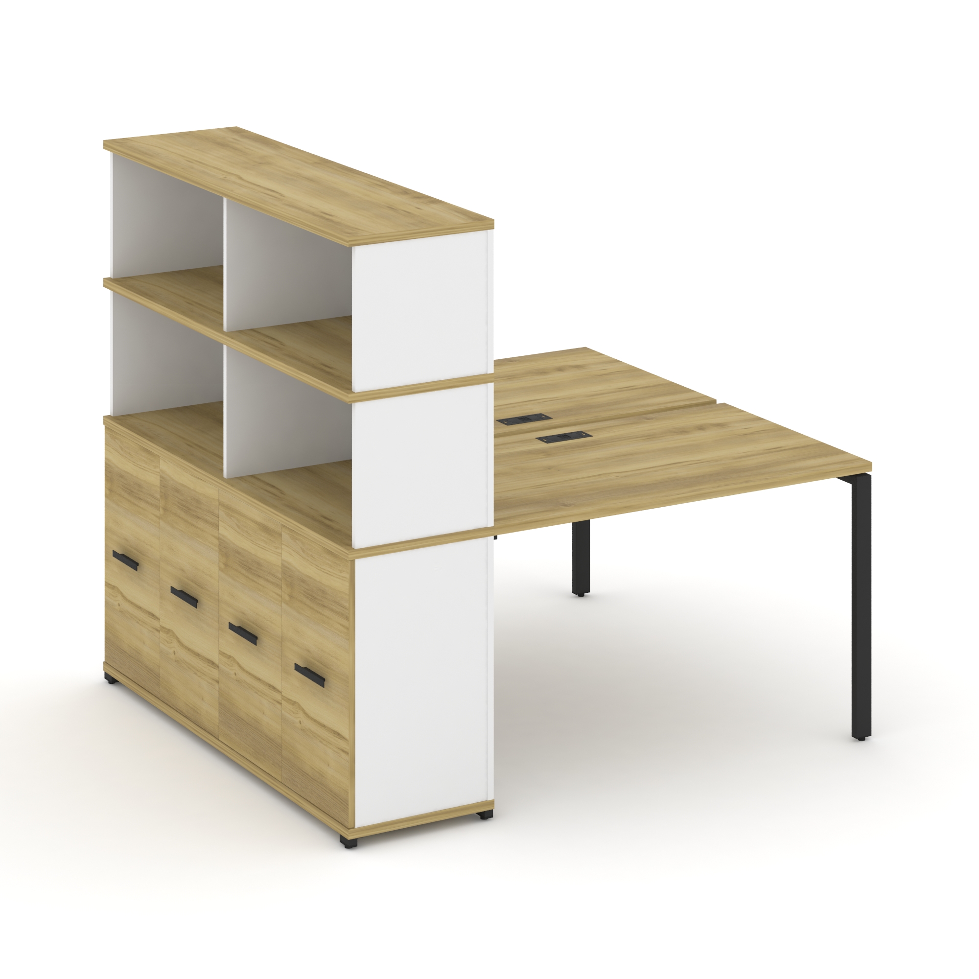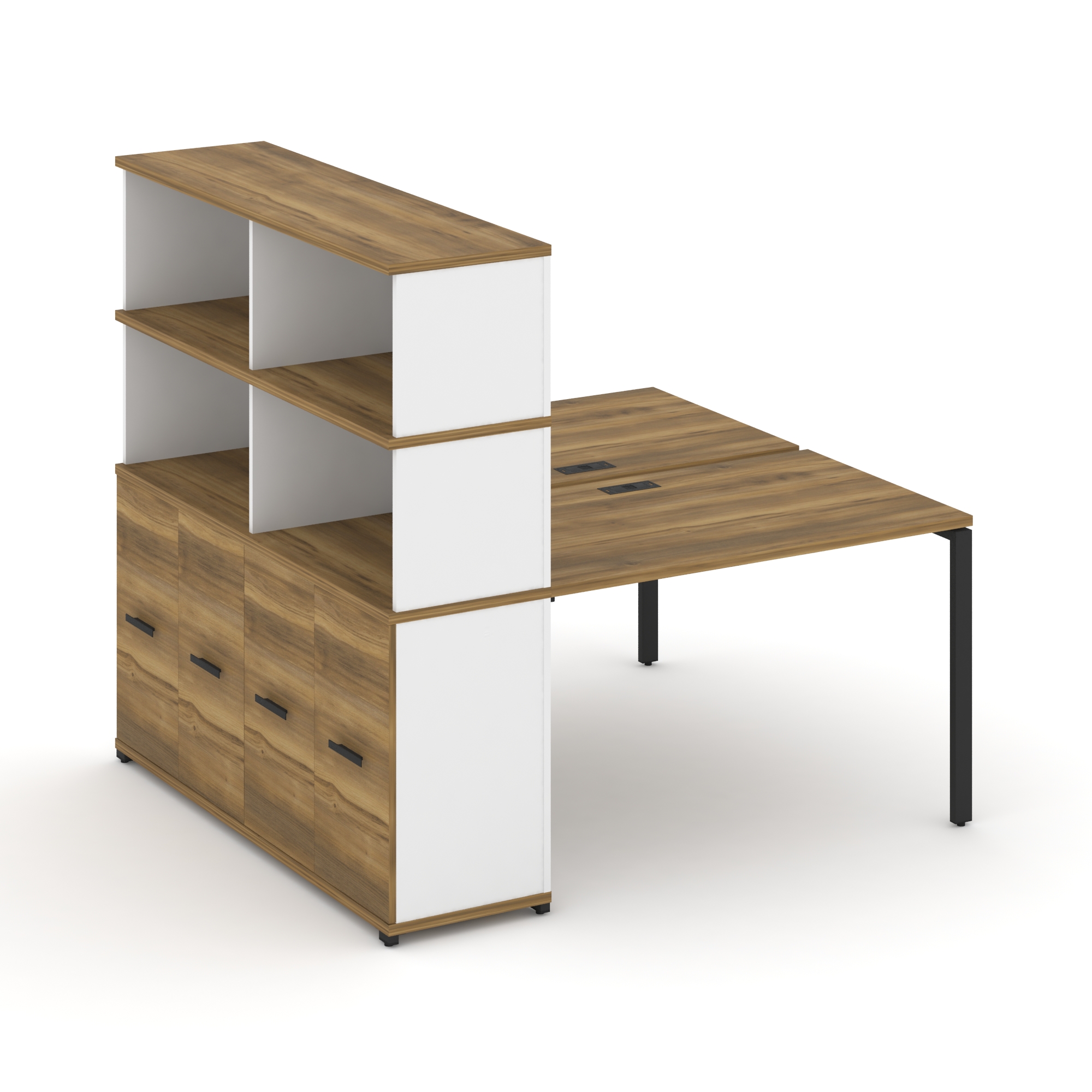 Concept Рабочая станция 4 места с 2 двухсторонними опорными тумбами CN.DRS-331 B Кобо/Металл Черный