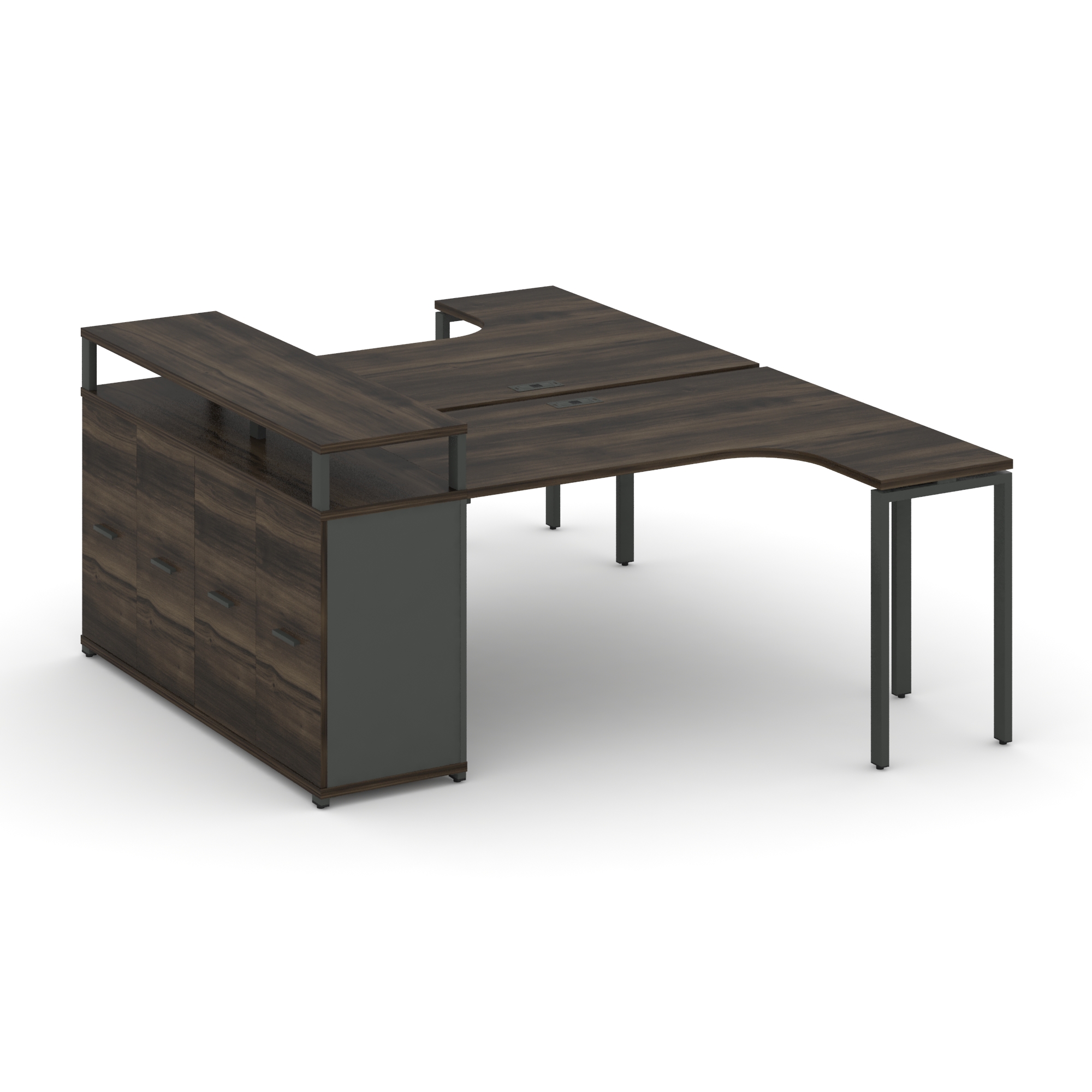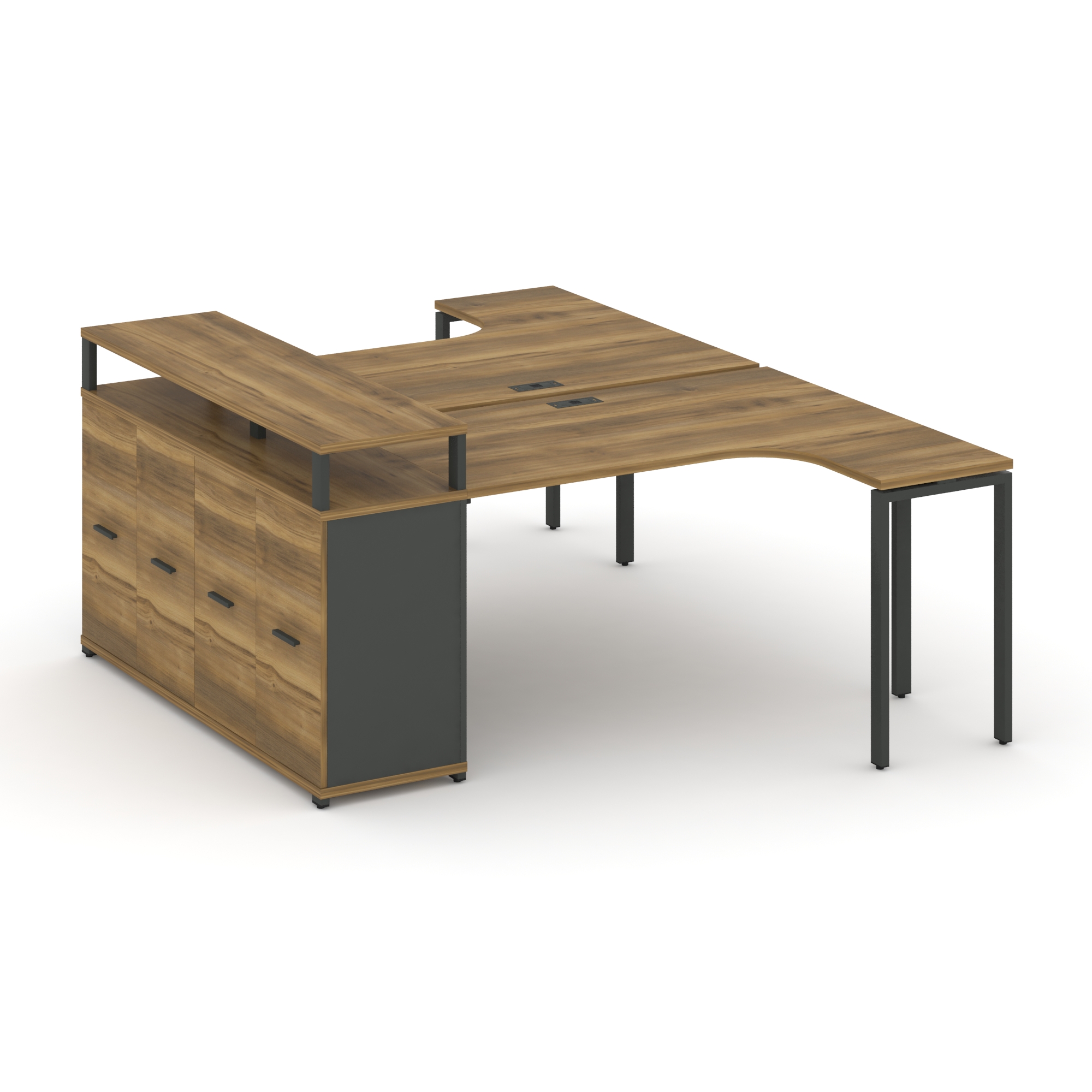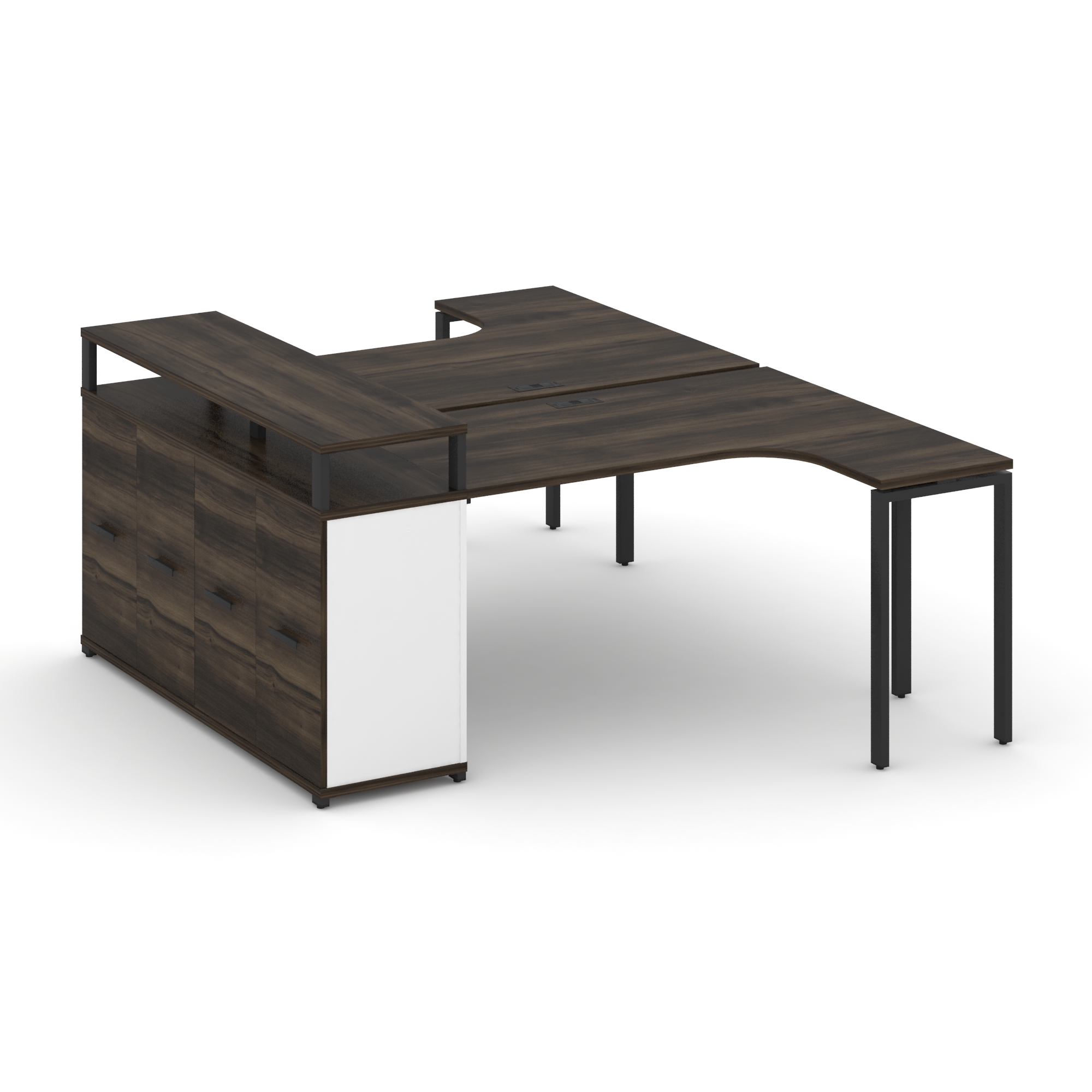 Concept Рабочая станция с двойной опорной тумбой CN.DSA-302 B Кобо/Металл Черный 1580/1946*2400*750