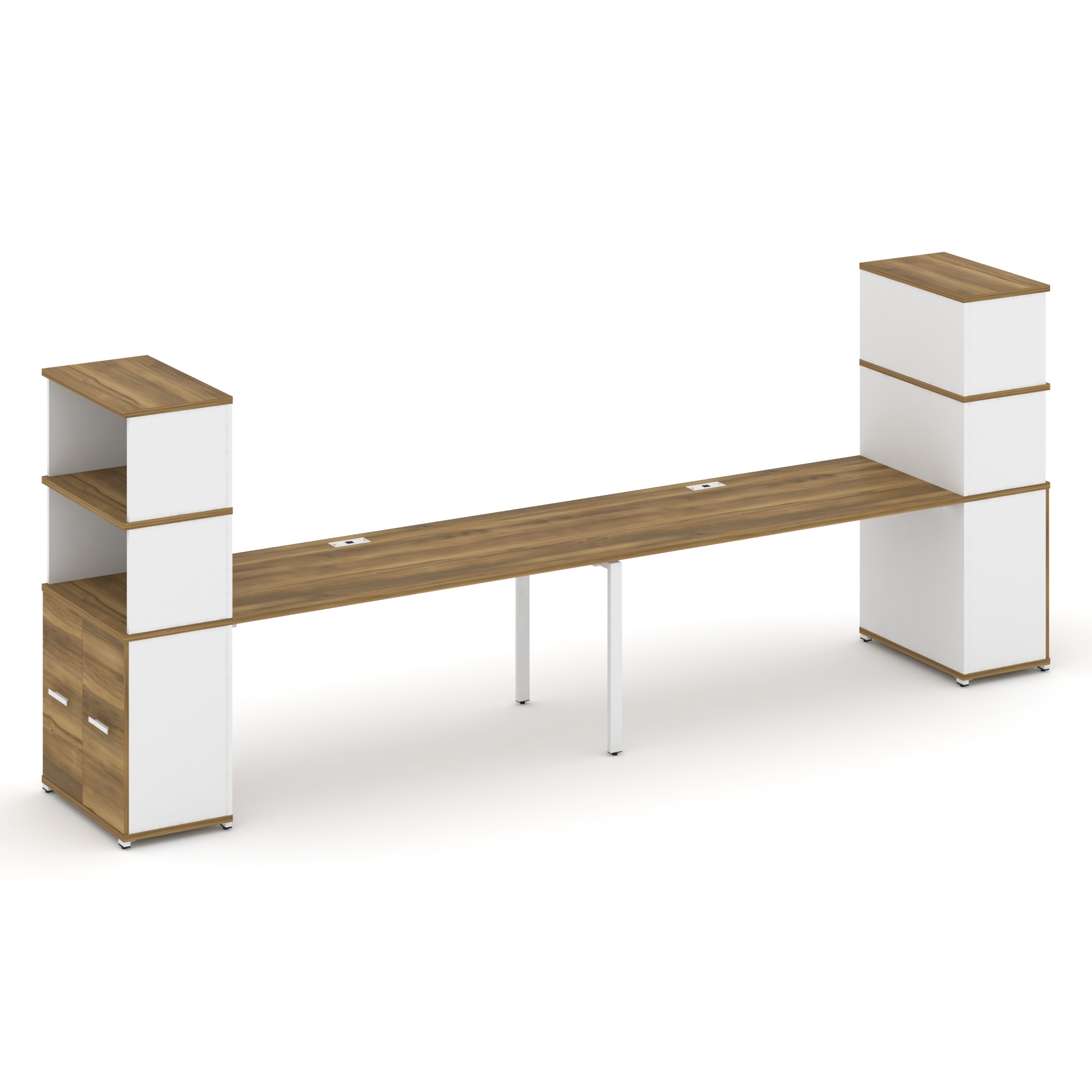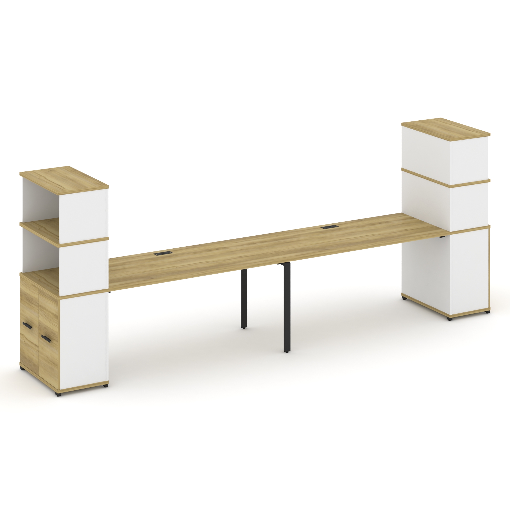 Concept Рабочая станция с опорными распаш. шкафами с надставкой низ. CN.ORS-228 W Дуб Винченцо/Белый