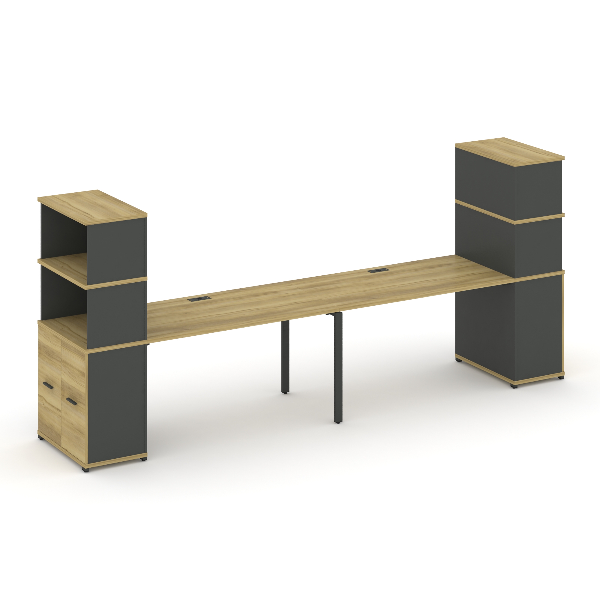 Concept Рабочая станция 2 места с 2 опорными тумбами CN.ORS-323 B Кобо/Металл Черный 2760/3426*720*7
