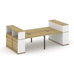 Concept Рабочая станция с опорными распаш. шкафами с надставкой выс. CN.DRS-276 W Дуб Винченцо/Белый