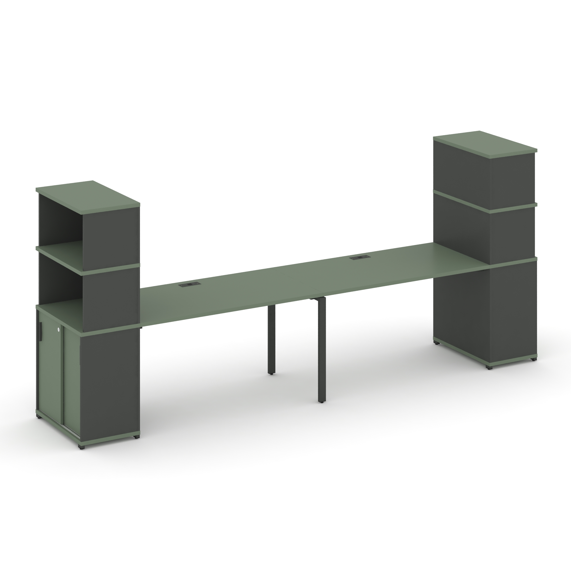 Concept Рабочая станция 2 места с 2 опорными тумбами CN.ORS-432 B Кобо/Металл Черный 4000*720*917