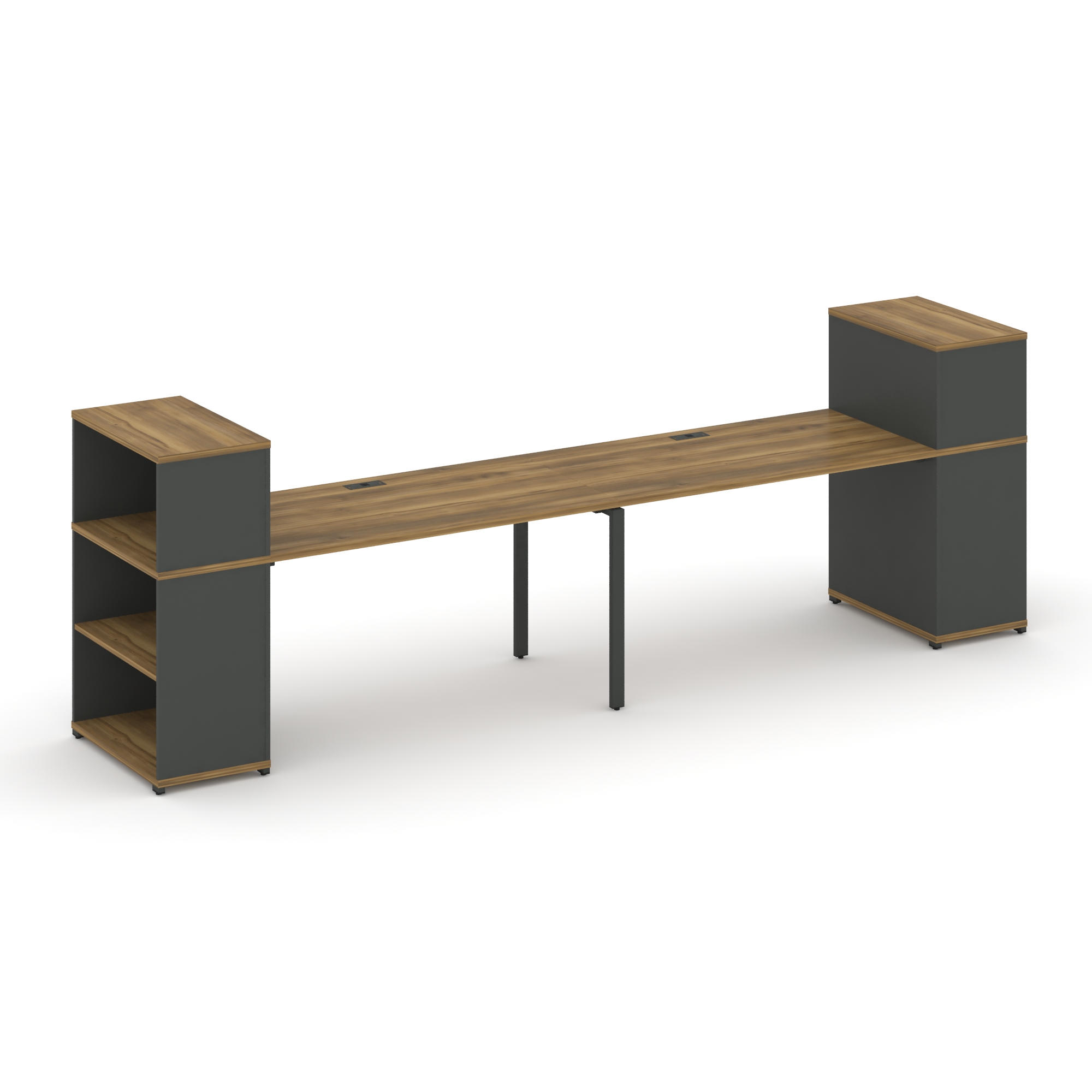 Concept Рабочая станция 2 места с 2 опорными тумбами CN.ORS-323 B Кобо/Металл Черный 2760/3426*720*7