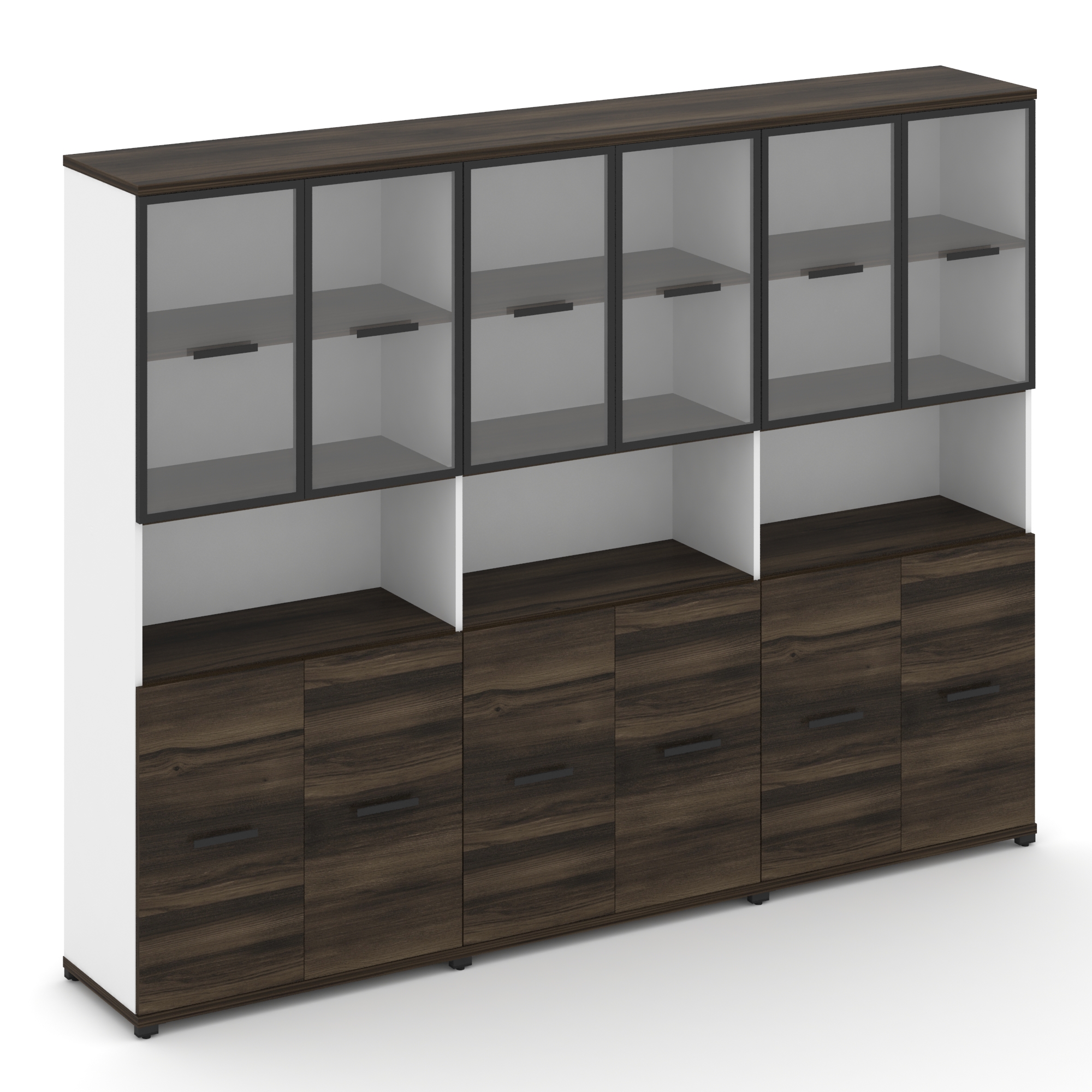 Concept Шкаф 3 широкие секции, 5 ниш CN.STS-533 RPB B Дуб Мали/Белый Бриллиант/Металл Черный/Прозрач
