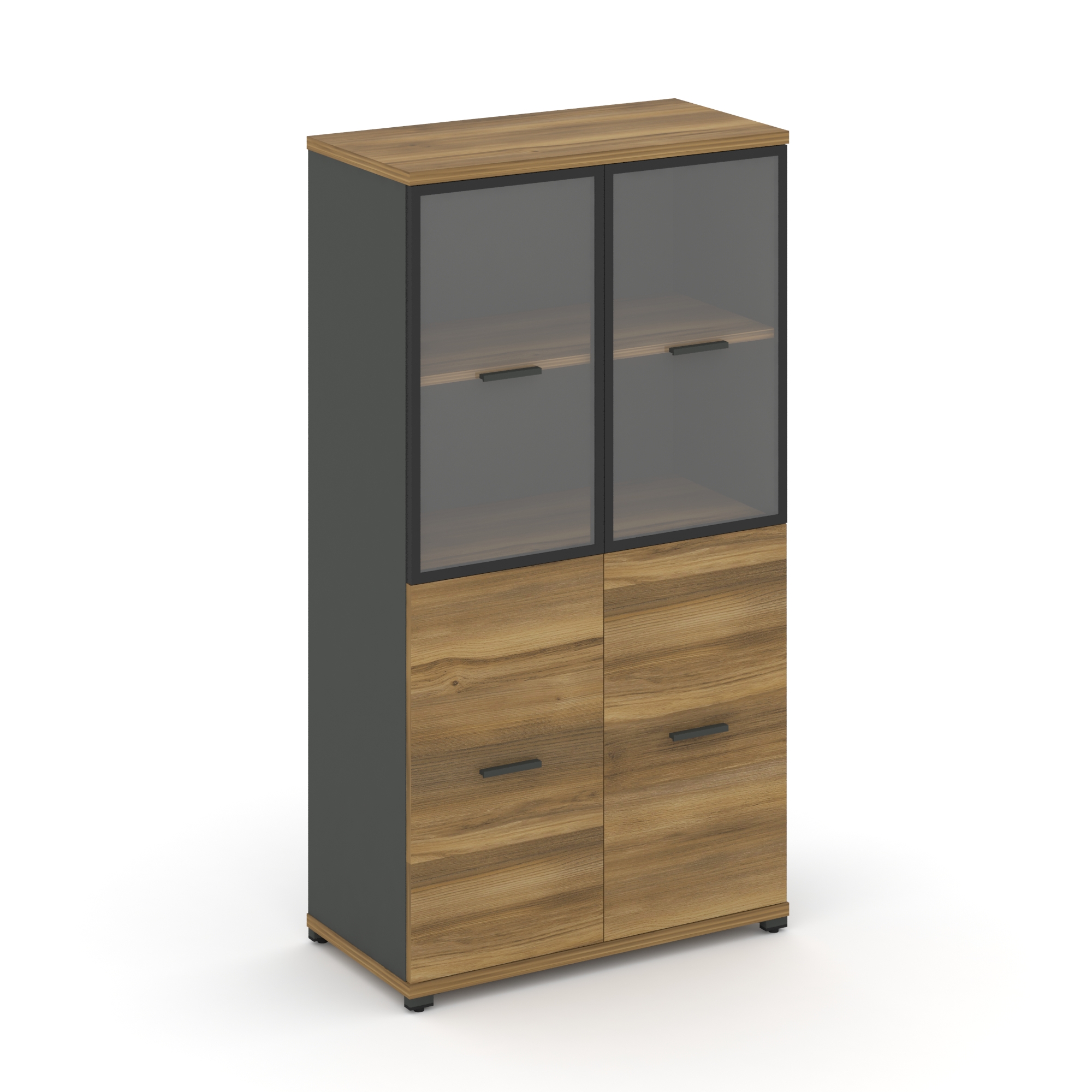 Concept Шкаф 2 широкие секции, 4 ниши CN.STS-426 RMB B Дуб Мали/Белый Бриллиант/Металл Черный/Сатин