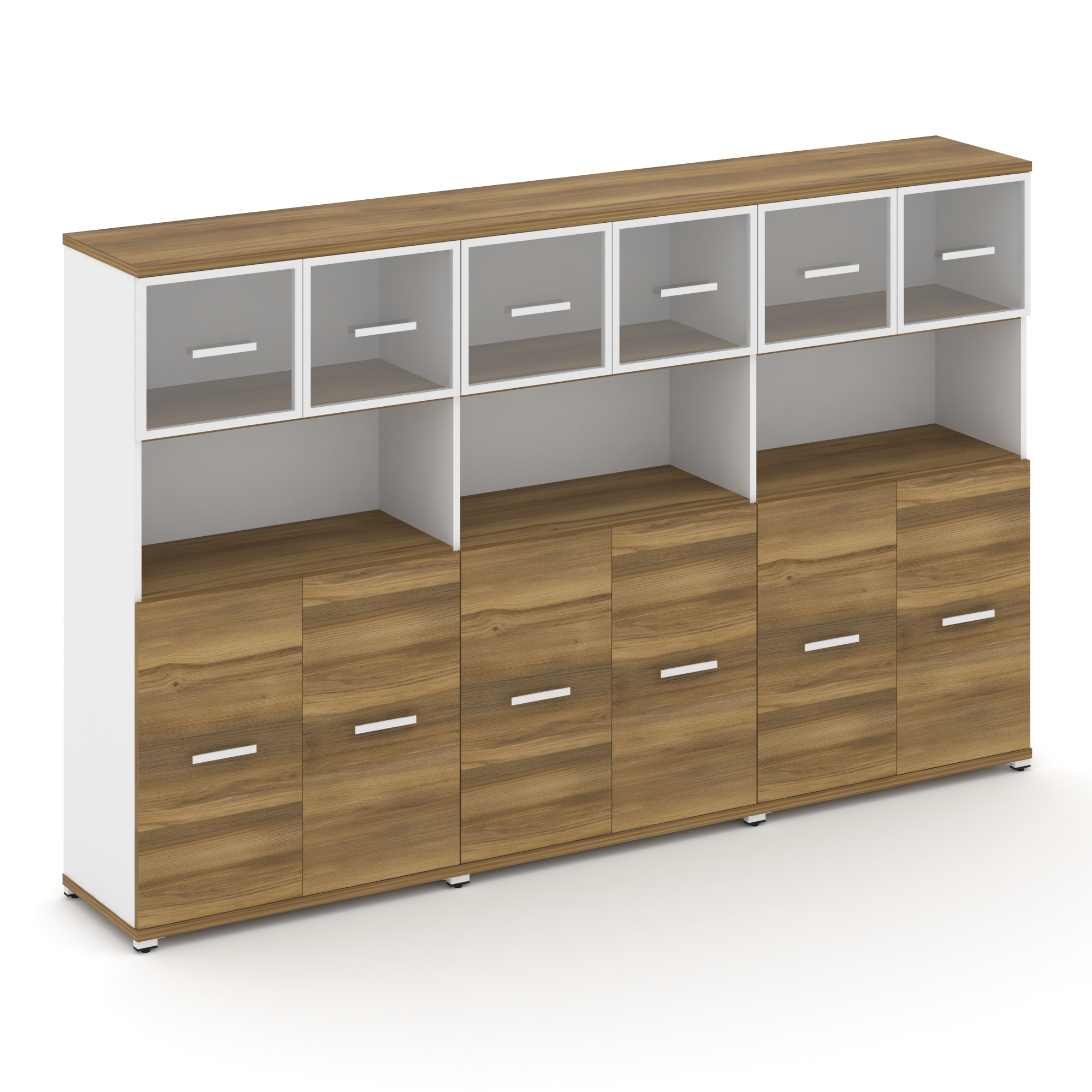 Concept Шкаф 3 широкие секции, 5 ниш CN.STS-533 RPB B Дуб Мали/Белый Бриллиант/Металл Черный/Прозрач