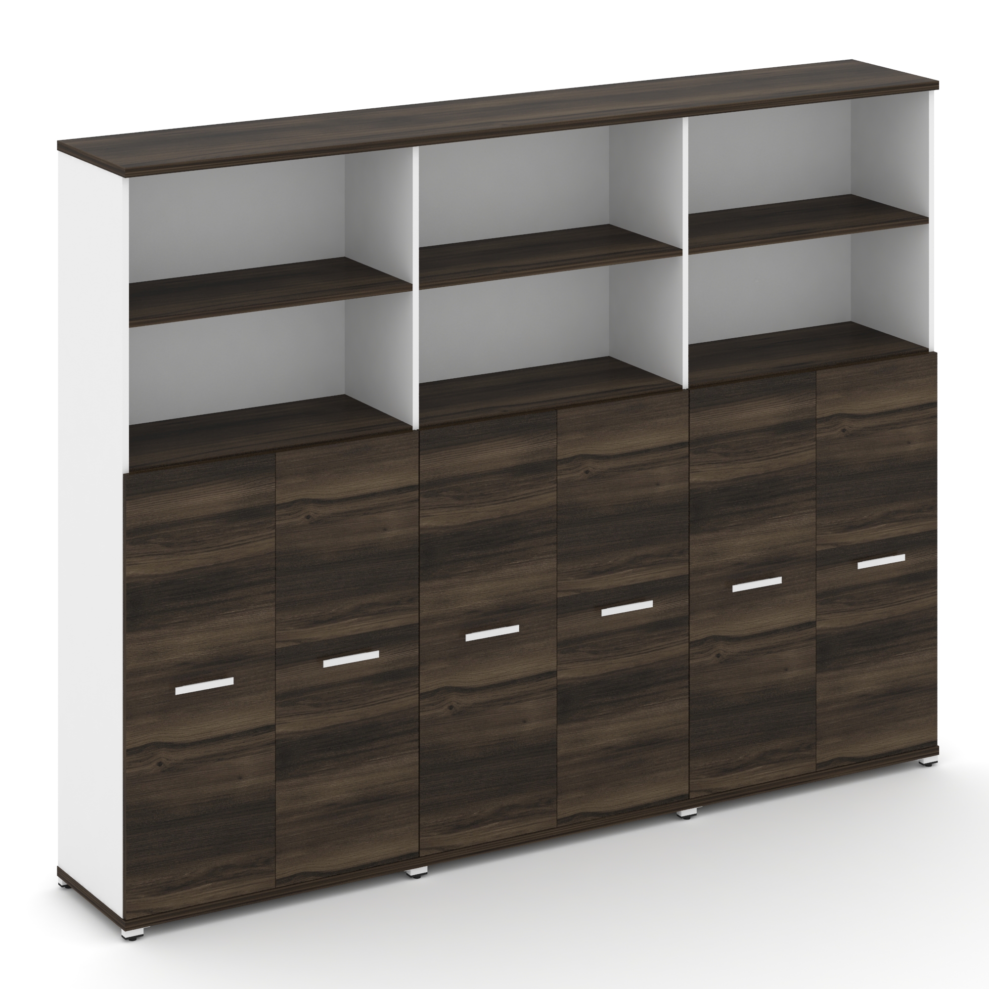 Concept Шкаф 6 узких секций, 2 ниши CN.STU-263 RPB B Дуб Мали/Белый Бриллиант/Металл Черный/Прозрачн