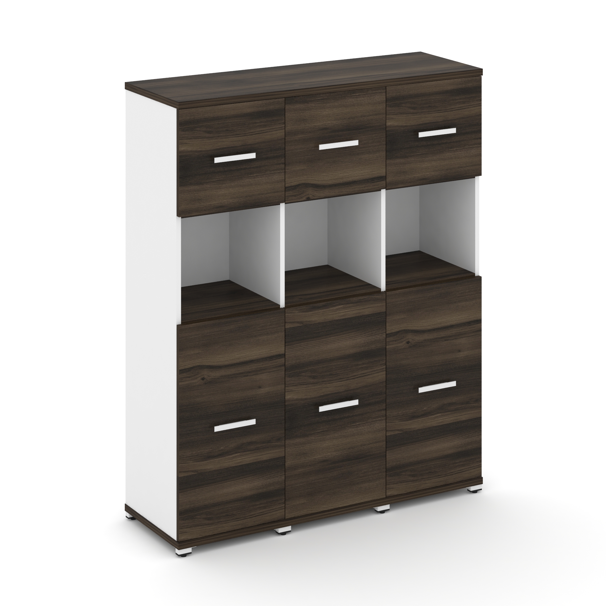 Concept Шкаф 3 широкие секции, 2 ниши CN.STS-232 RPW W Дуб Винченцо/Белый Бриллиант/Металл Белый/Про