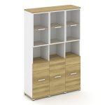 Concept Шкаф 6 узких секций, 5 ниш CN.STU-568 RPB B Дуб Мали/Белый Бриллиант/Металл Черный/Прозрачны