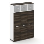Concept Шкаф 2 узкие секции, 4 ниши CN.STU-422 RPB B Дуб Мали/Белый Бриллиант/Металл Черный/Прозрачн