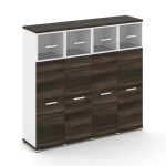 Concept Шкаф 2 узкие секции, 4 ниши CN.STU-422 RPB B Дуб Мали/Белый Бриллиант/Металл Черный/Прозрачн
