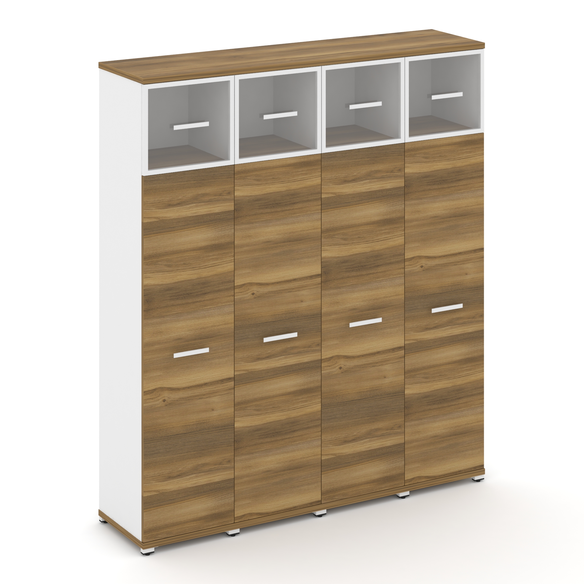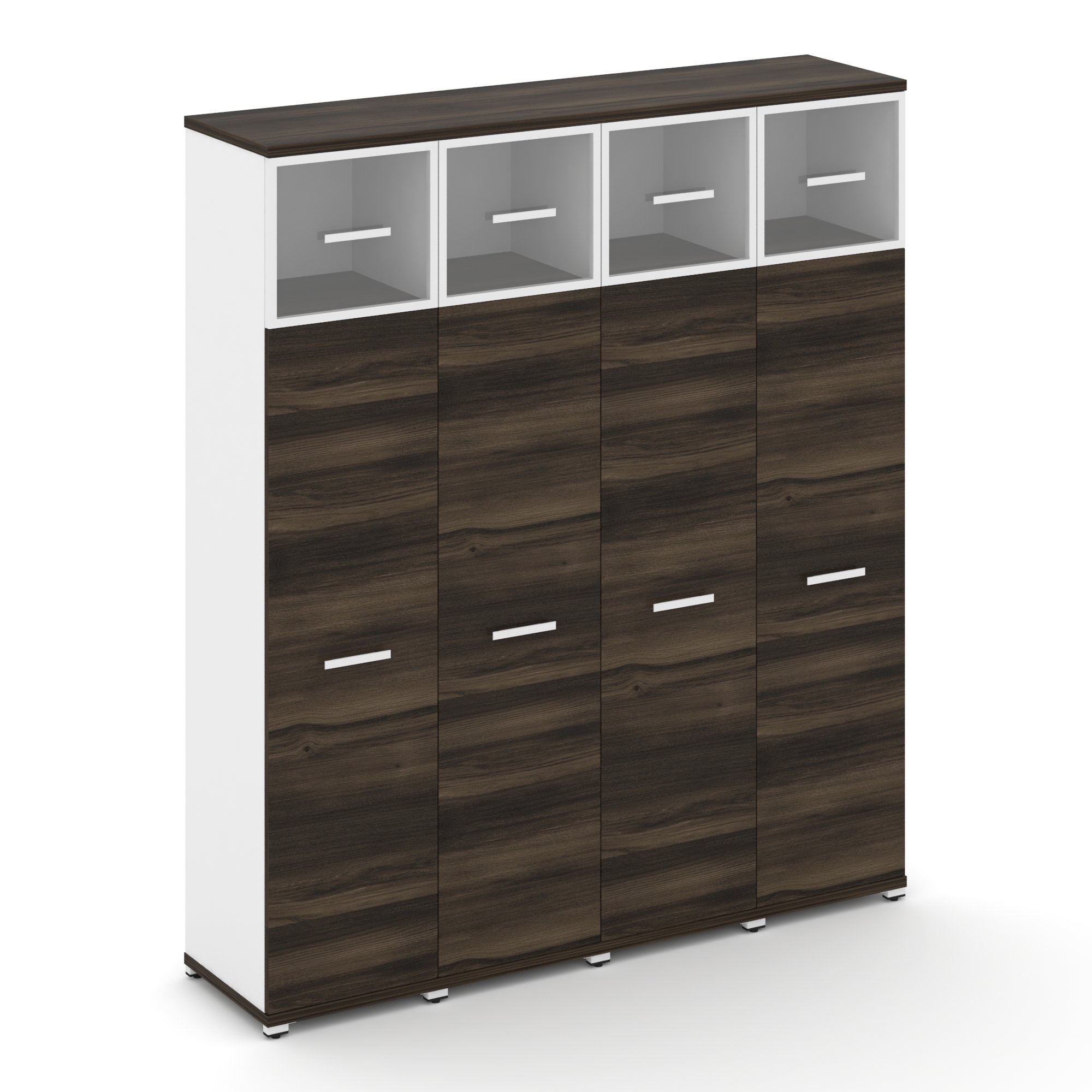Concept Шкаф 2 узкие секции, 4 ниши CN.STU-422 RPB B Дуб Мали/Белый Бриллиант/Металл Черный/Прозрачн