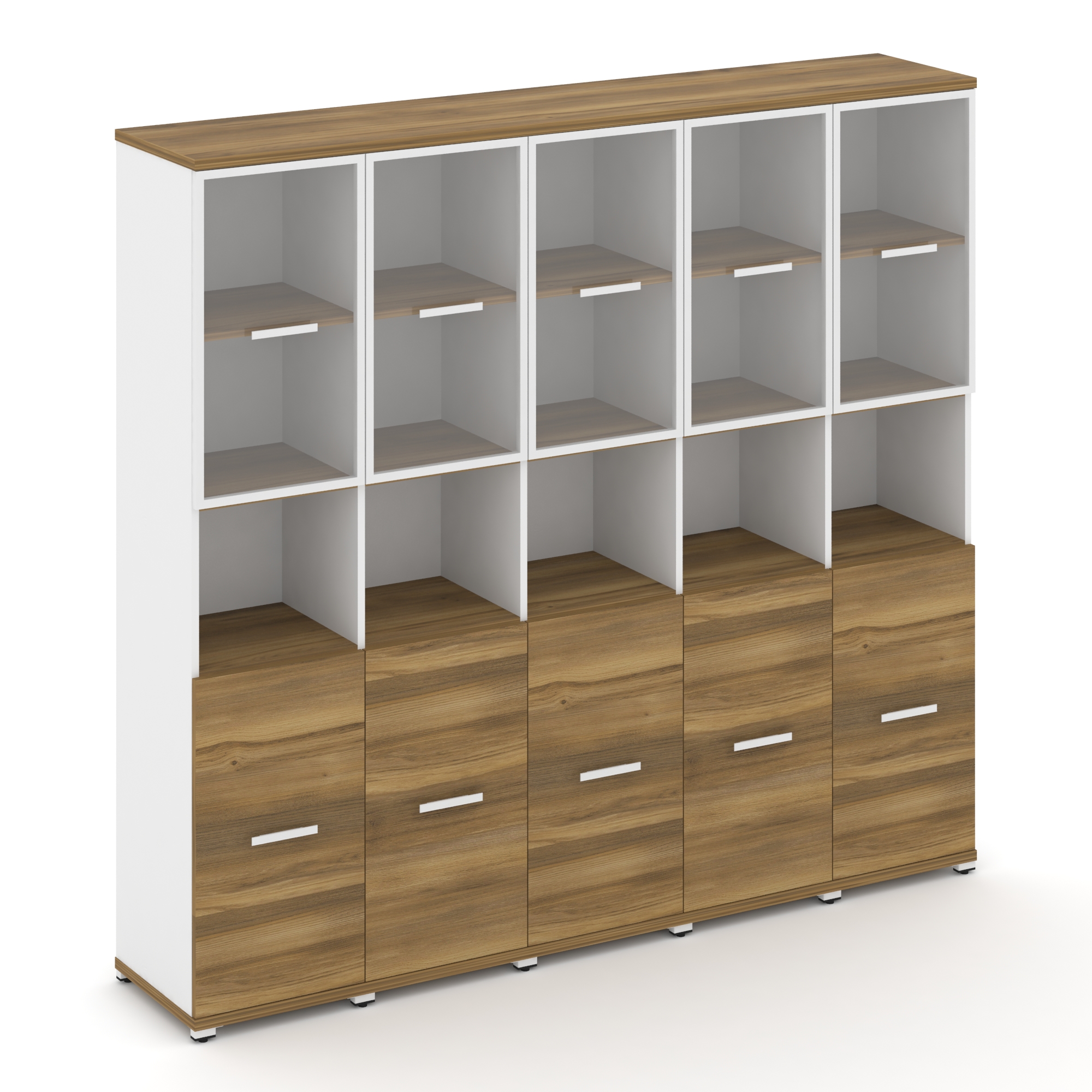 Concept Шкаф 5 узких секции, 5 ниш CN.STU-553 RPW W Дуб Винченцо/Белый Бриллиант/Металл Белый/Прозра
