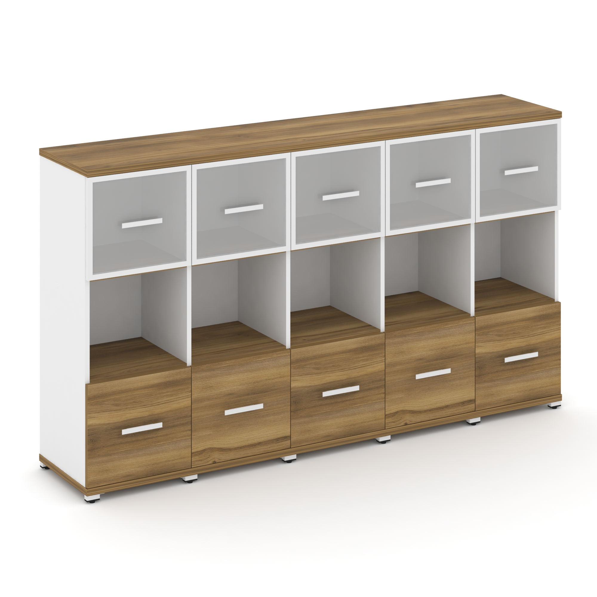 Concept Шкаф 5 узких секций, 3 ниши CN.STU-355 RMW W Дуб Винченцо/Белый Бриллиант/Металл Белый/Сатин