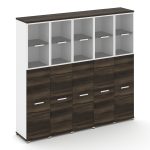 Concept Шкаф 6 узких секций, 5 ниш CN.STU-568 RPB B Дуб Мали/Белый Бриллиант/Металл Черный/Прозрачны